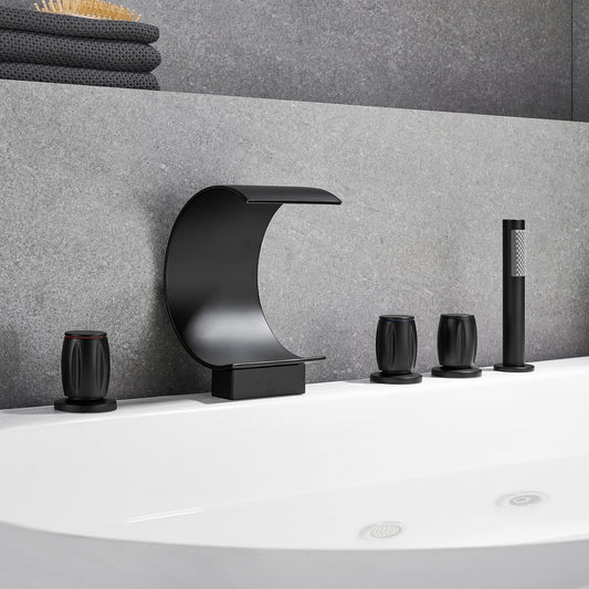Recea Triple Handle Deck-Mount Roman Tub Faucet in Matte Black with Diverter and Handshower