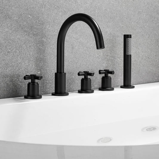 Sorlia Cross Handles Deck-Mount Roman Tub Faucet in Matte Black with Handheld shower