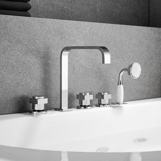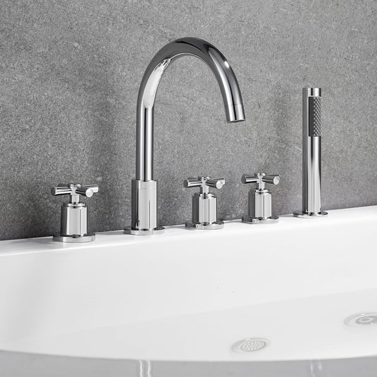Sorlia Cross Handles Deck-Mount Roman Tub Faucet in Polished Chrome with Handshower