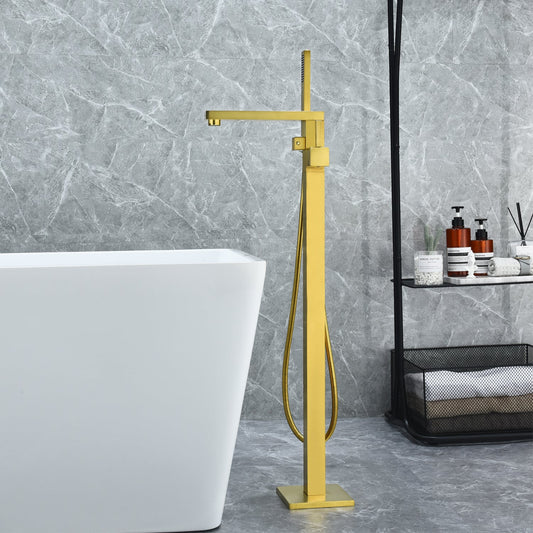 Larod Single Lever Handle Freestanding Floor Mounted Tub Filler with Handshower in Brushed Gold