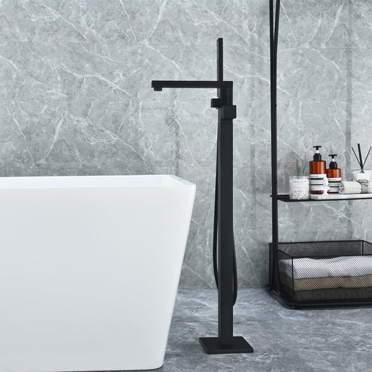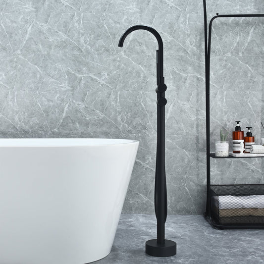Larod Single Lever Handle Freestanding Floor Mounted Tub Filler with Handshower in Matte Black