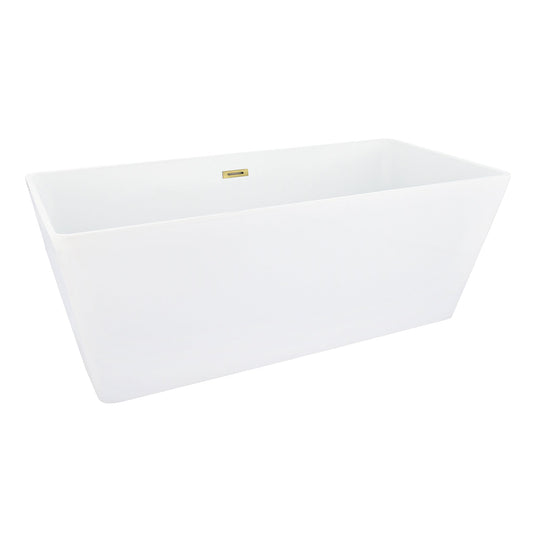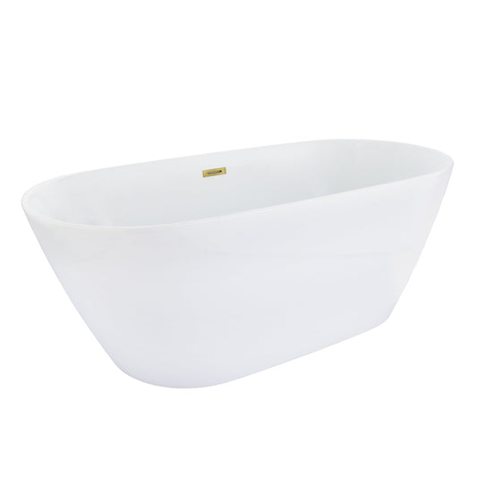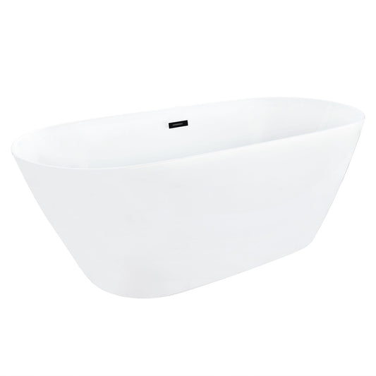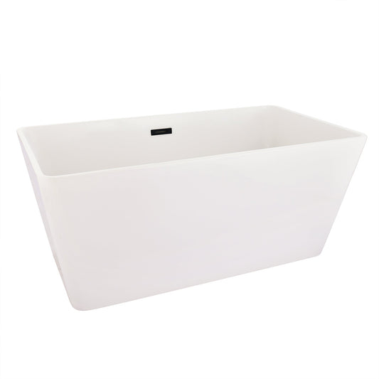 Rauris 59" x 28" Flatbottom Freestanding Acrylic Soaking Bathtub in Glossy White with Drain and Overflow