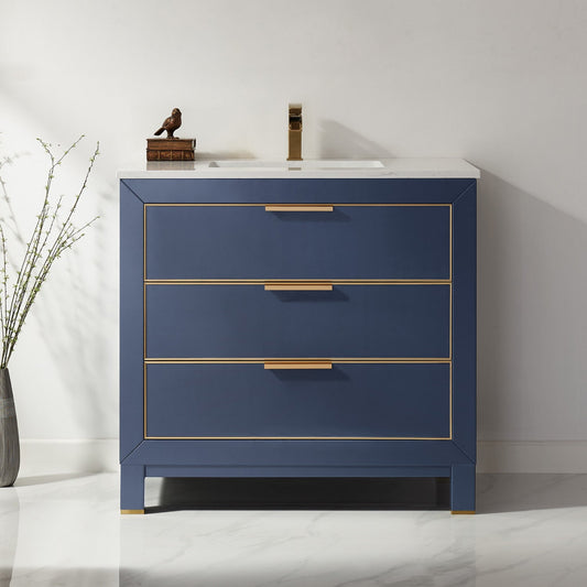 Jackson 36" Single Bathroom Vanity Set in Royal Blue and Aosta White Engineered Stone Countertop without Mirror
