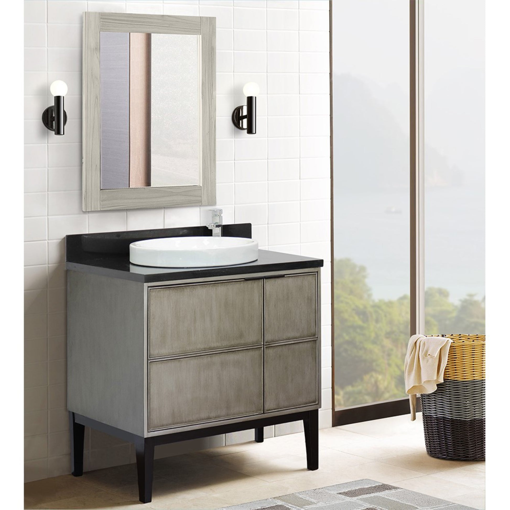 The Scandi collection by Bellaterra Home features is a traditional cabinet with a modern twist. It is constructed with solid oak and birch veneer. On all corners, it has full corner block for stability and additional support for the counter top. It is hand applied with multiple layers of ecofriendly stain and top coat to prevent pealing, cracking and fading. The interior finish is consistent throughout and matches the exterior finish. This cabinet offers immaculate styling while concealing a fantastic amount of storage behind a set of doors. The interior drawer is constructed with English dovetail and smooth full extension glide. This collection is offered in two configurations, wall mount or freestanding, and also, a variety of finishes and designs. Each cabinet is configured to work with our variety of countertops or any standard size tops. These elegant bathroom vanity top features a 1.3” thick Black Galaxy Granite preinstalled with a white cUPC certified ceramic sink and a matching 4 in. H. backsplash is available for purchase to complete the utmost beauty and functionality. It will easily match many home interiors. The vanity top is pre-drilled with 3 holes for a wide spread faucet. Bellaterra Home’s counter tops are pre-sealed and polished for added protection. All genuine stone material has its variation of veining pattern and color; every top will be slightly different.