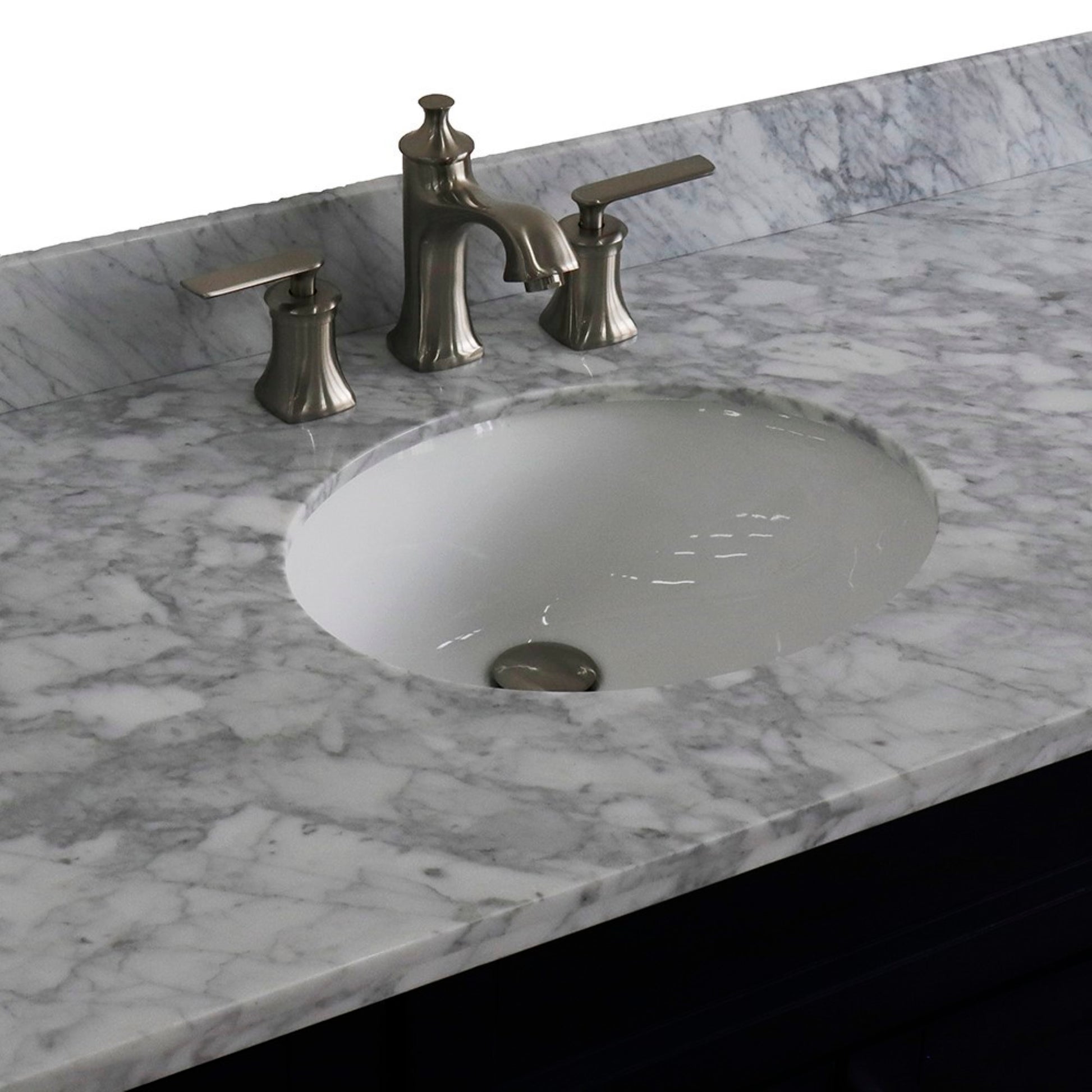 49" Single sink vanity in Blue finish with White carrara marble and oval sink