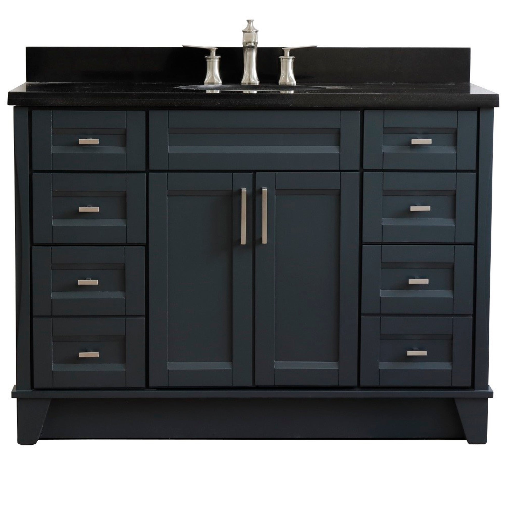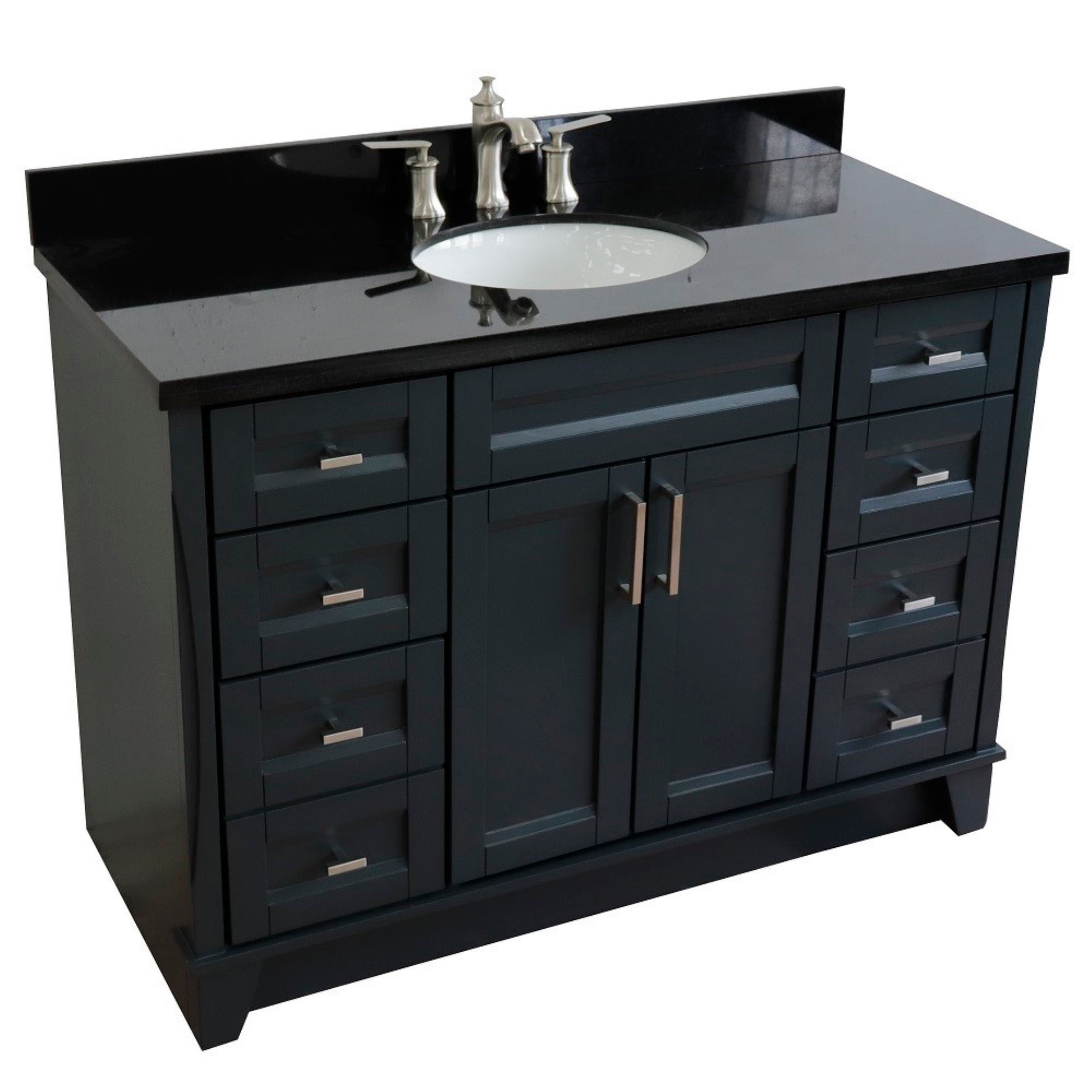 49" Single sink vanity in Dark Gray finish with Black galaxy granite and oval sink