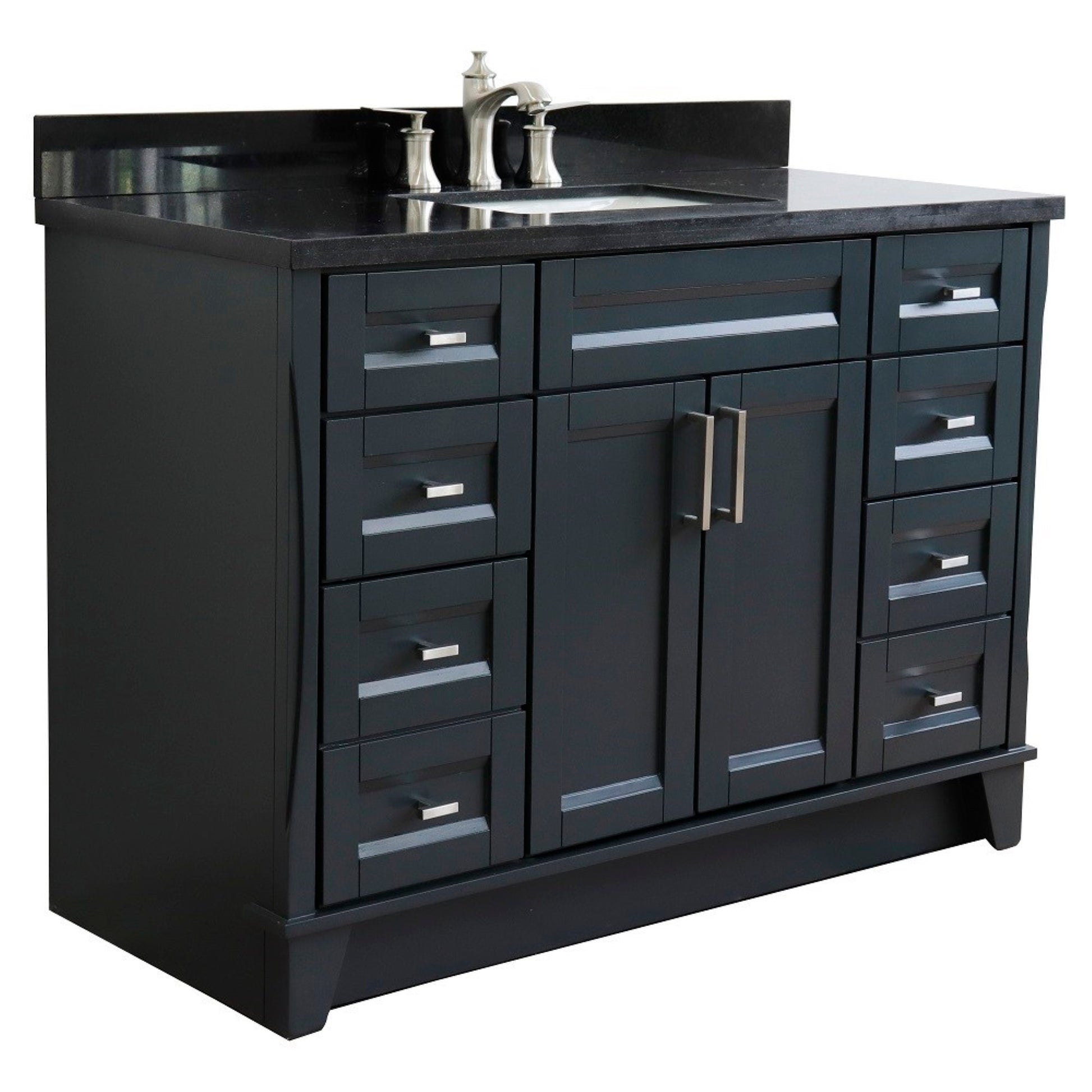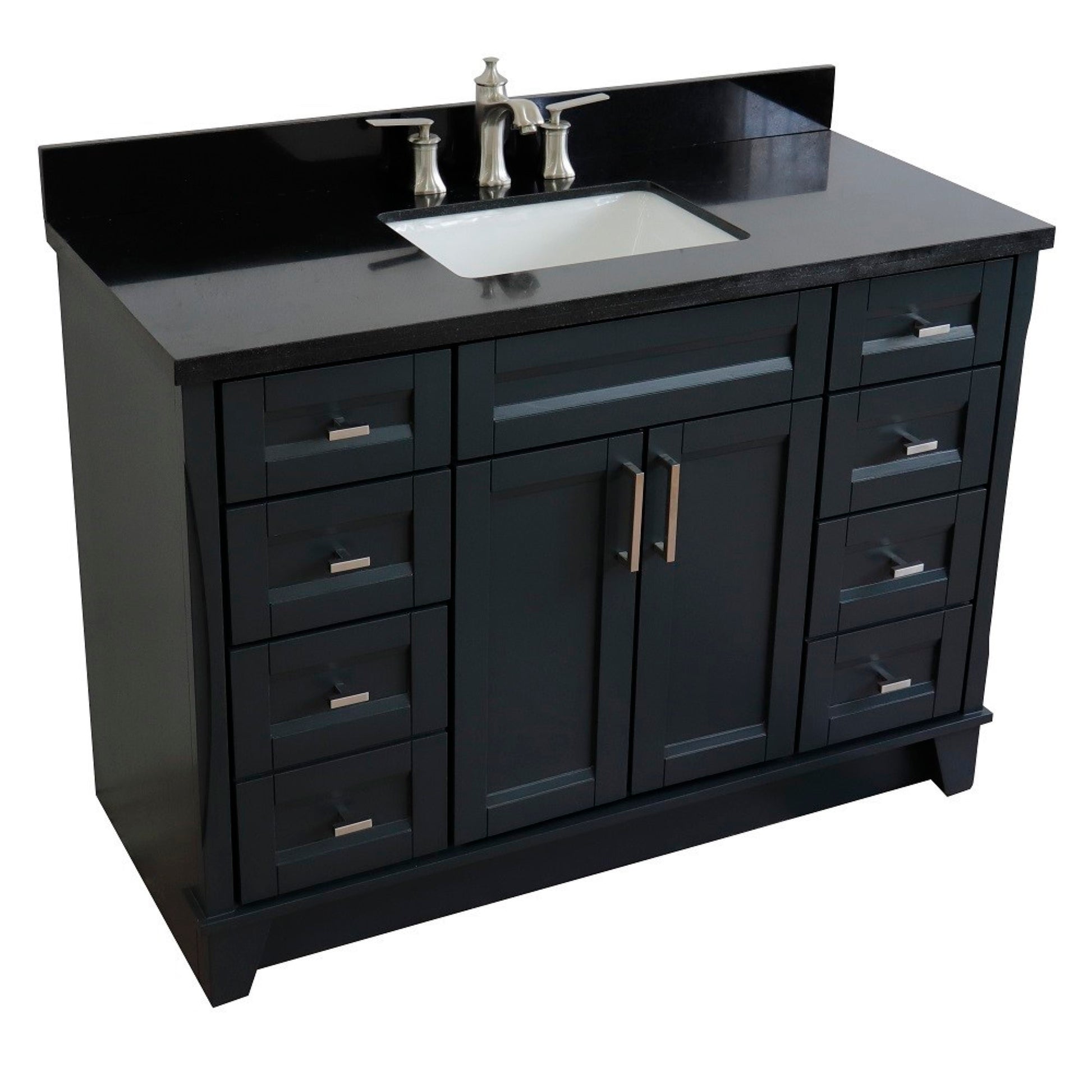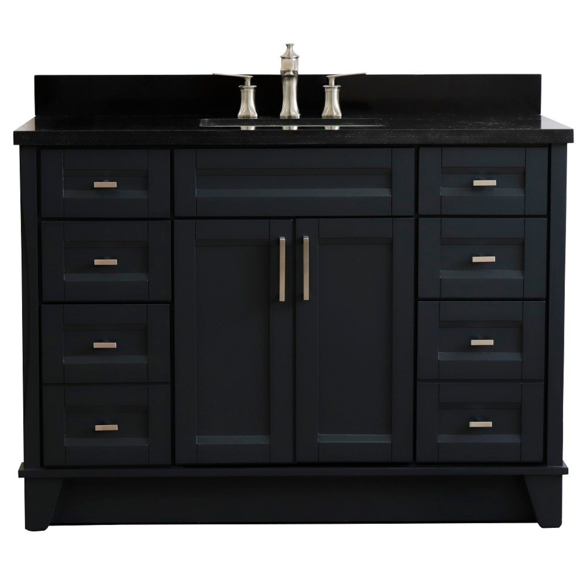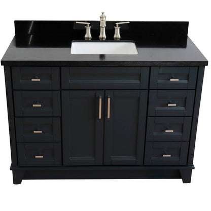 49" Single sink vanity in Dark Gray finish with Black galaxy granite and rectangle sink