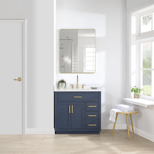 Gavino 36" Single Bathroom Vanity in Royal Blue with Grain White Engineered Stone Countertop without Mirror