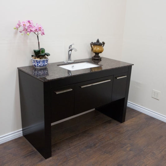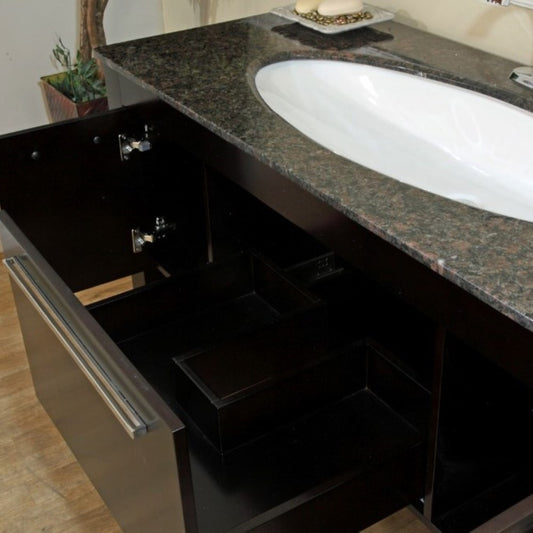 55.3" Single sink vanity Dark walnut Baltic Brown marble