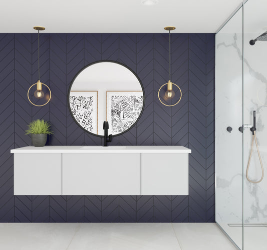 Vitri 60" Nautical Blue Single Sink Bathroom Vanity with VIVA Stone Matte White Solid Surface Countertop