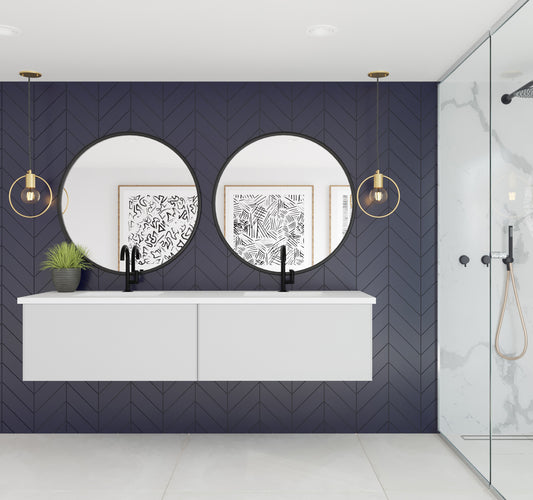 Aurora 84" Matte Midnight Black Wall Hung Double Sink Bathroom Vanity with White Acrylic Countertop
