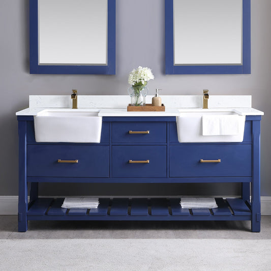 Georgia 72" Double Bathroom Vanity Set in Jewelry Blue and Aosta White Composite Stone Top with White Farmhouse Basin without Mirror