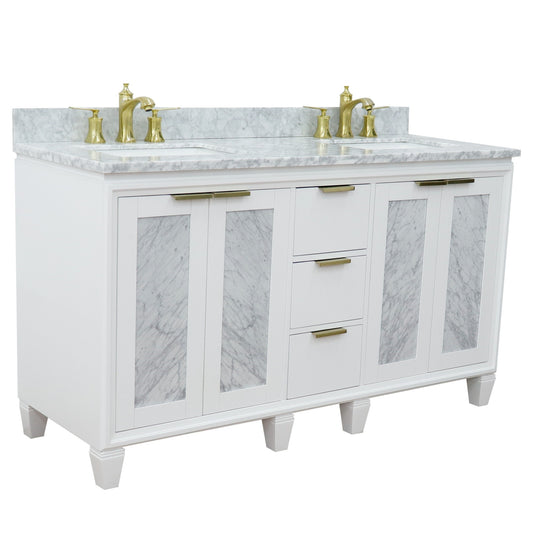 61" Double sink vanity in White finish with White Carrara marble and rectangle sink