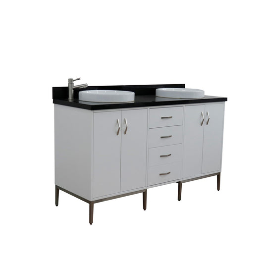 61" Double sink vanity in White finish with Black galaxy granite and round sink