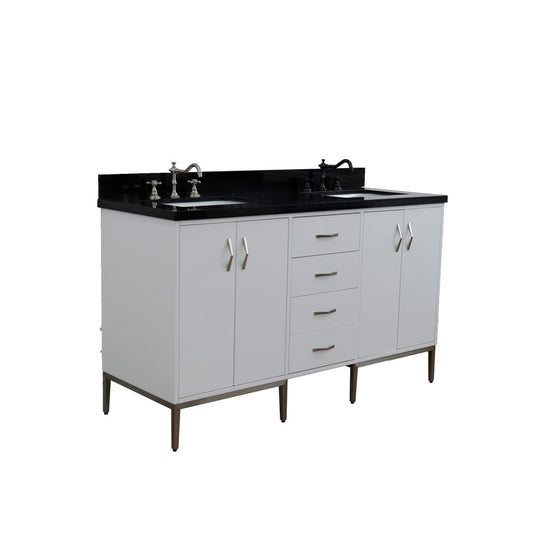 61" Double sink vanity in White finish with Black galaxy granite and rectangle sink