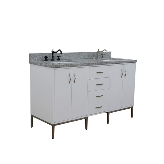 61" Double sink vanity in White finish with Gray granite and rectangle sink