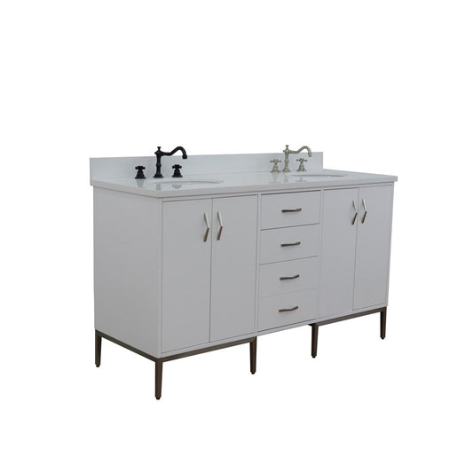 61" Double sink vanity in White finish with White engineered stone and oval sink