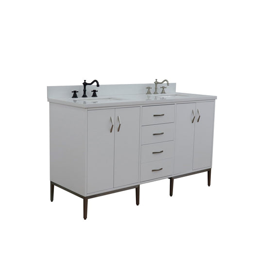 61" Double sink vanity in White finish with White engineered stone and rectangle sink