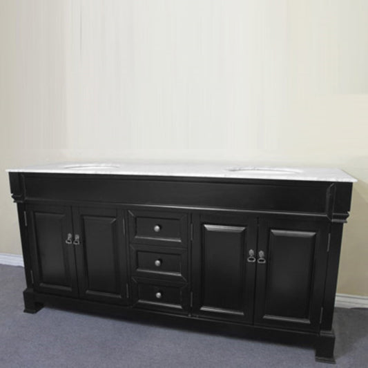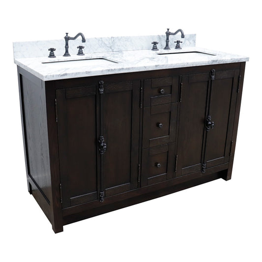 55" Double vanity in Brown Ash finish with White Carrara top and rectangle sink