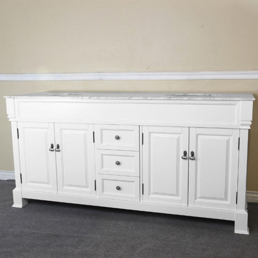 55" Double vanity in Glacier Ash finish with White Carrara marble top and rectangle sink