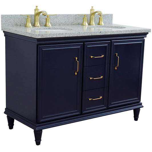 49" Double vanity in Blue finish with Gray granite and oval sink