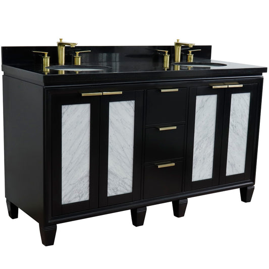 61" Double sink vanity in Black finish with Black galaxy granite and oval sink