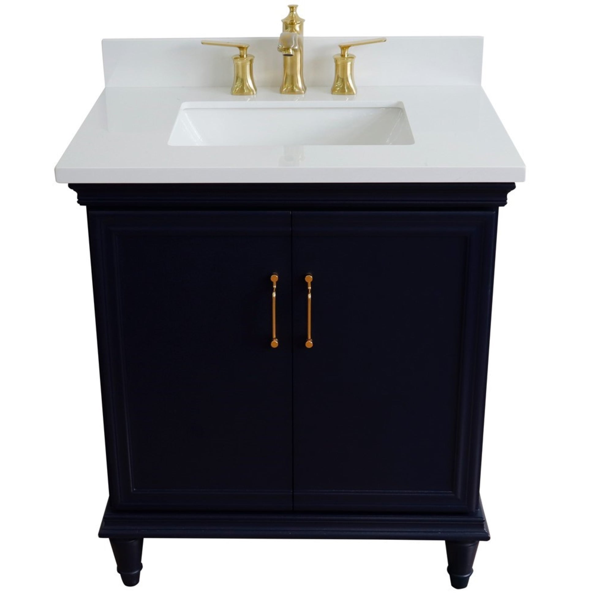 31" Single vanity in Blue finish with White engineered stone and rectangle sink