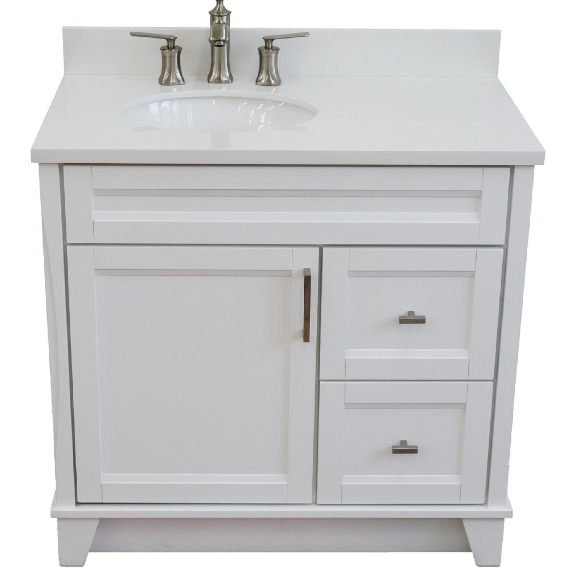 37" Single sink vanity in White finish with White engineered stone and Left door/Left sink