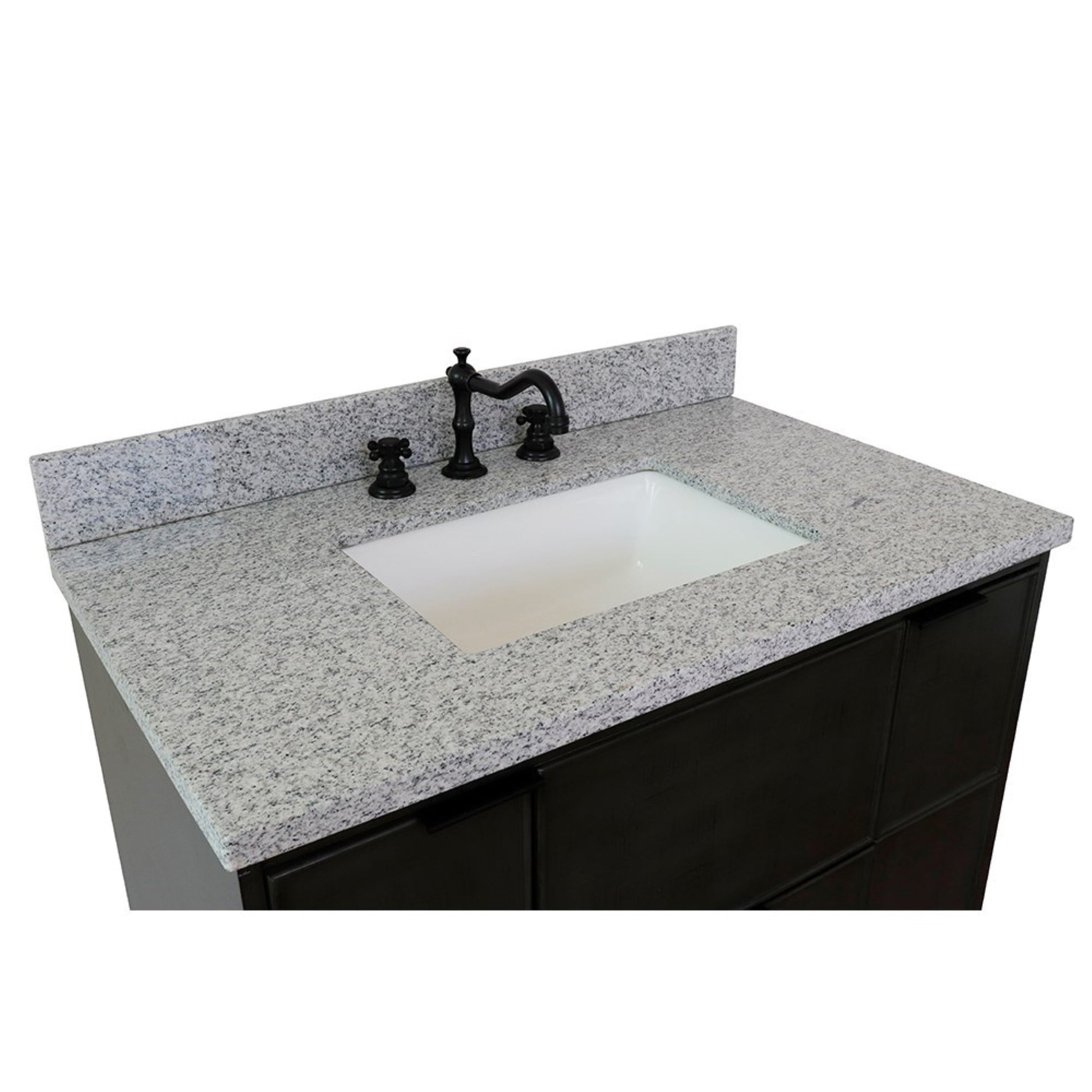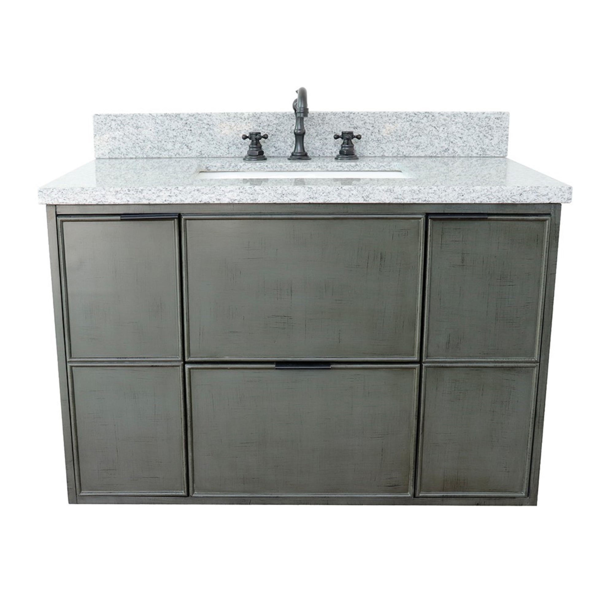 37" Single wall mount vanity in Linen Gray finish with Gray granite top and rectangle sink