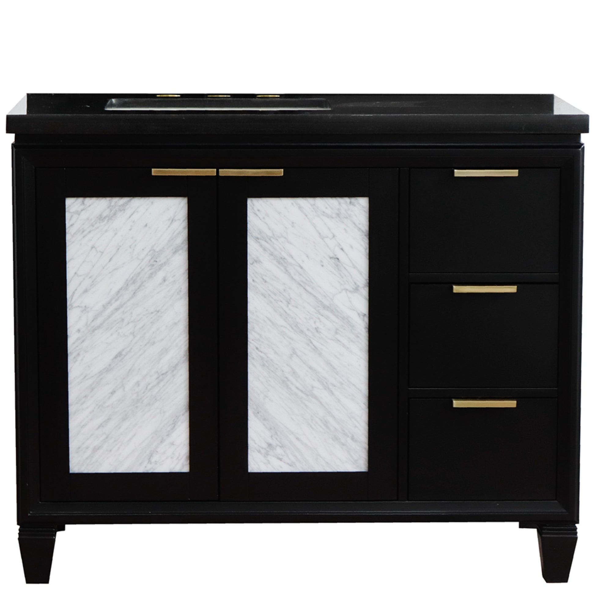 43" Single vanity in Black finish with Black galaxy and rectangle sink Left door/Left sink