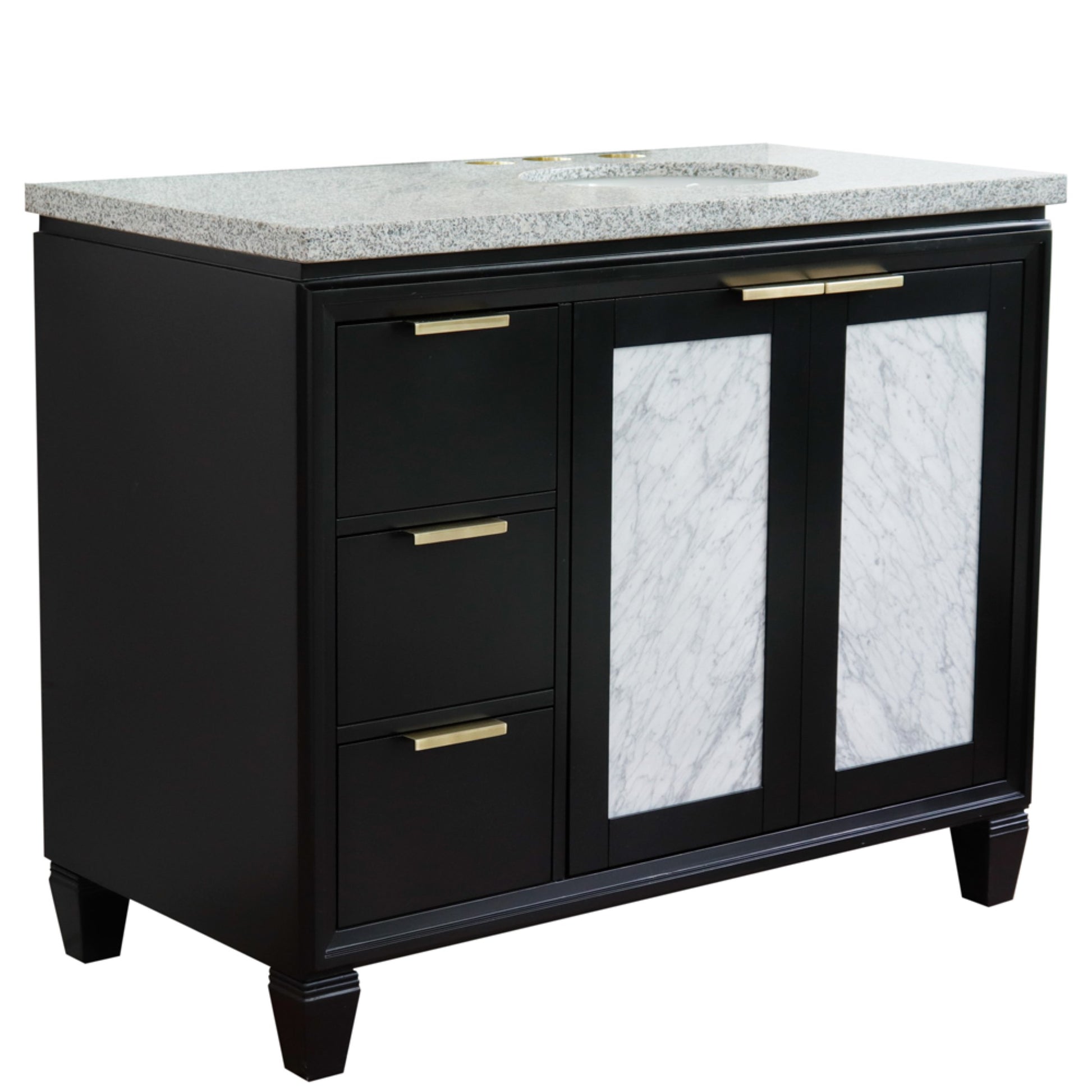 43" Single vanity in Black finish with Gray granite and oval sink Right door/Right sink