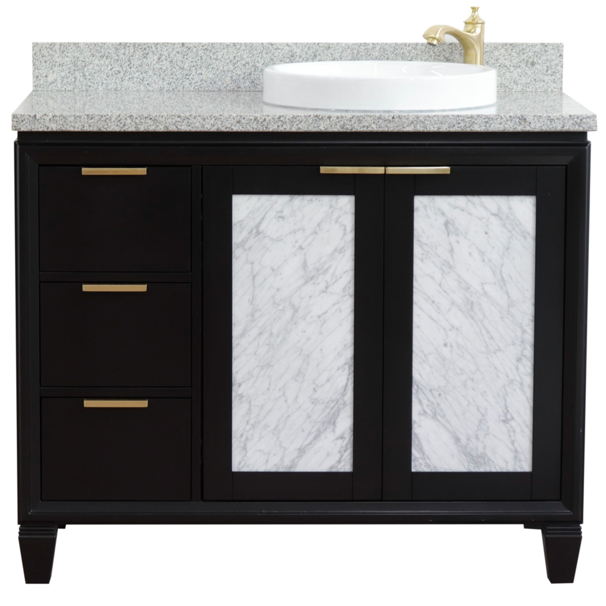 43" Single vanity in Black finish with Gray granite and round sink Right door/Right sink