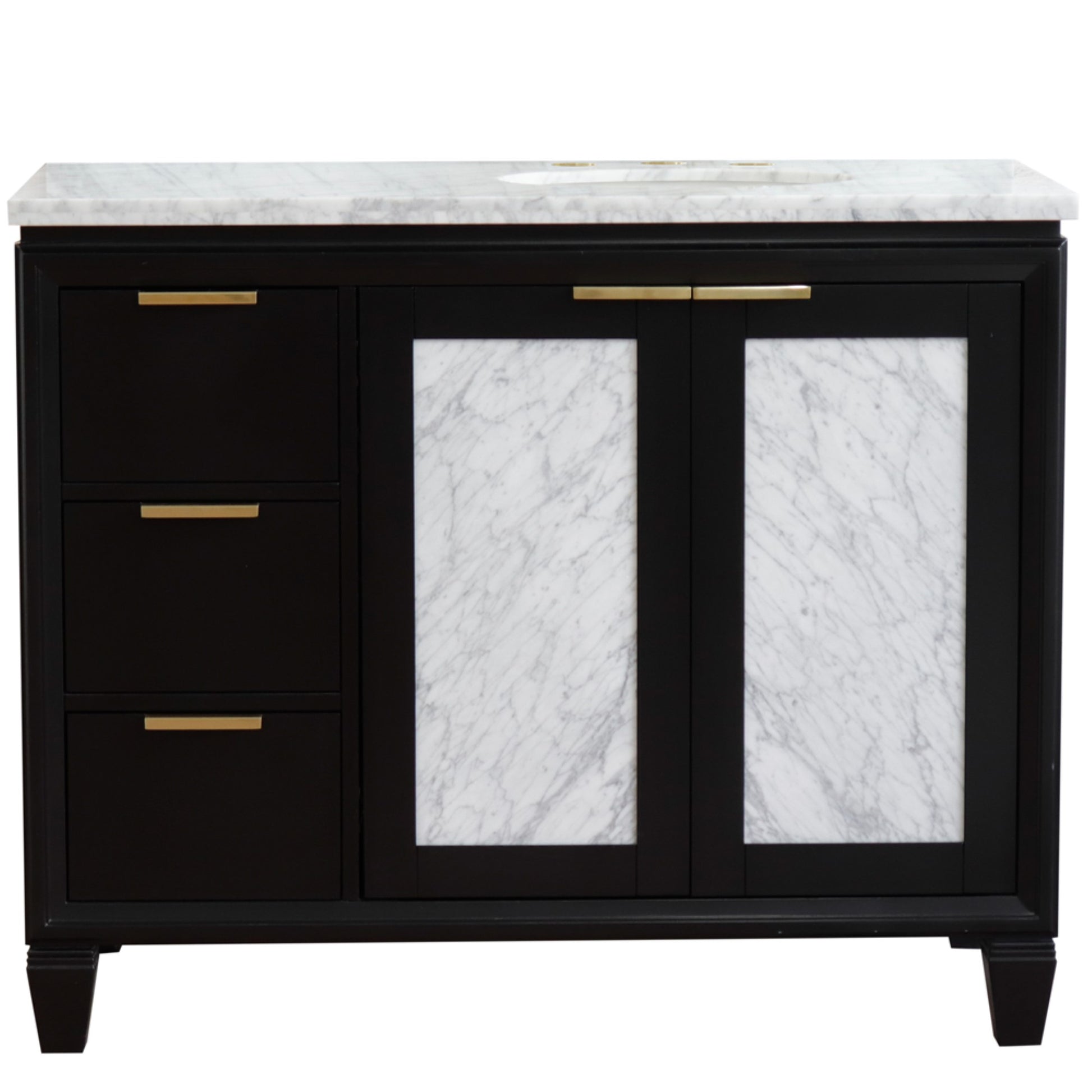 43" Single vanity in Black finish with White Carrara and oval sink Right door/Right sink