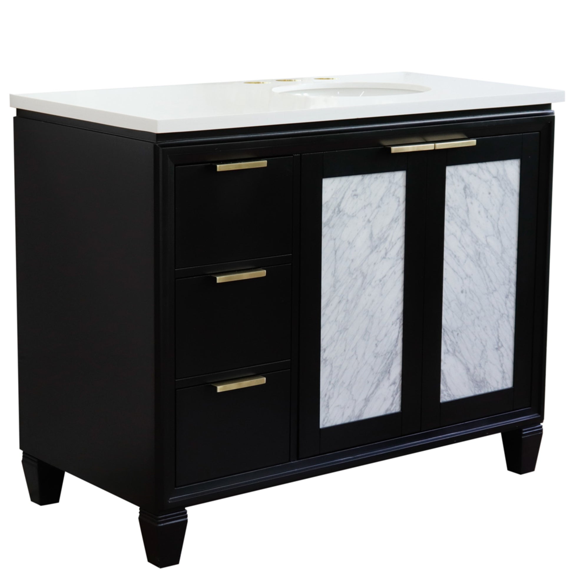 43" Single vanity in Black finish with White engineered stone and oval sink Right door/Right sink
