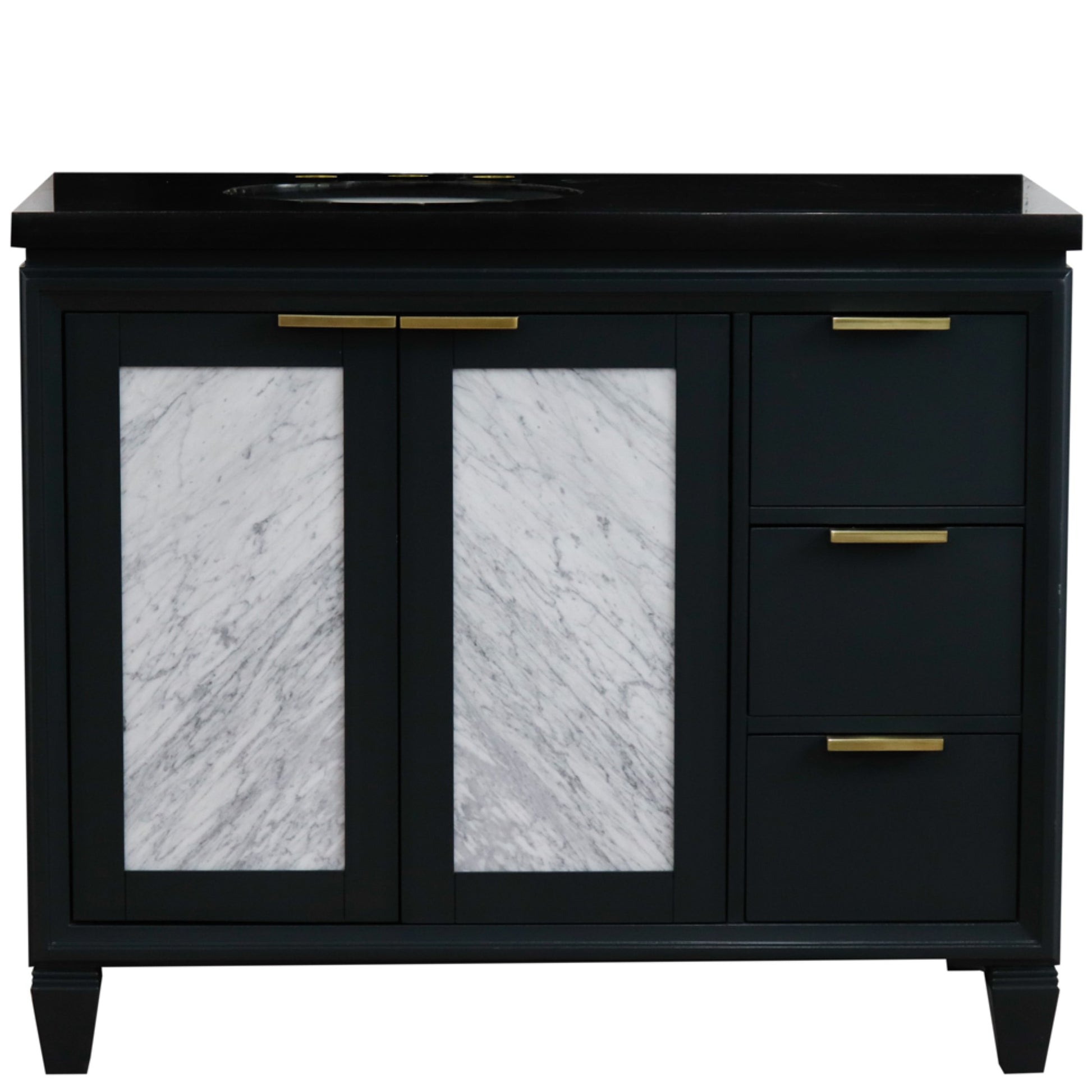 43" Single vanity in Dark Gray finish with Black galaxy and oval sink Left door/Left sink