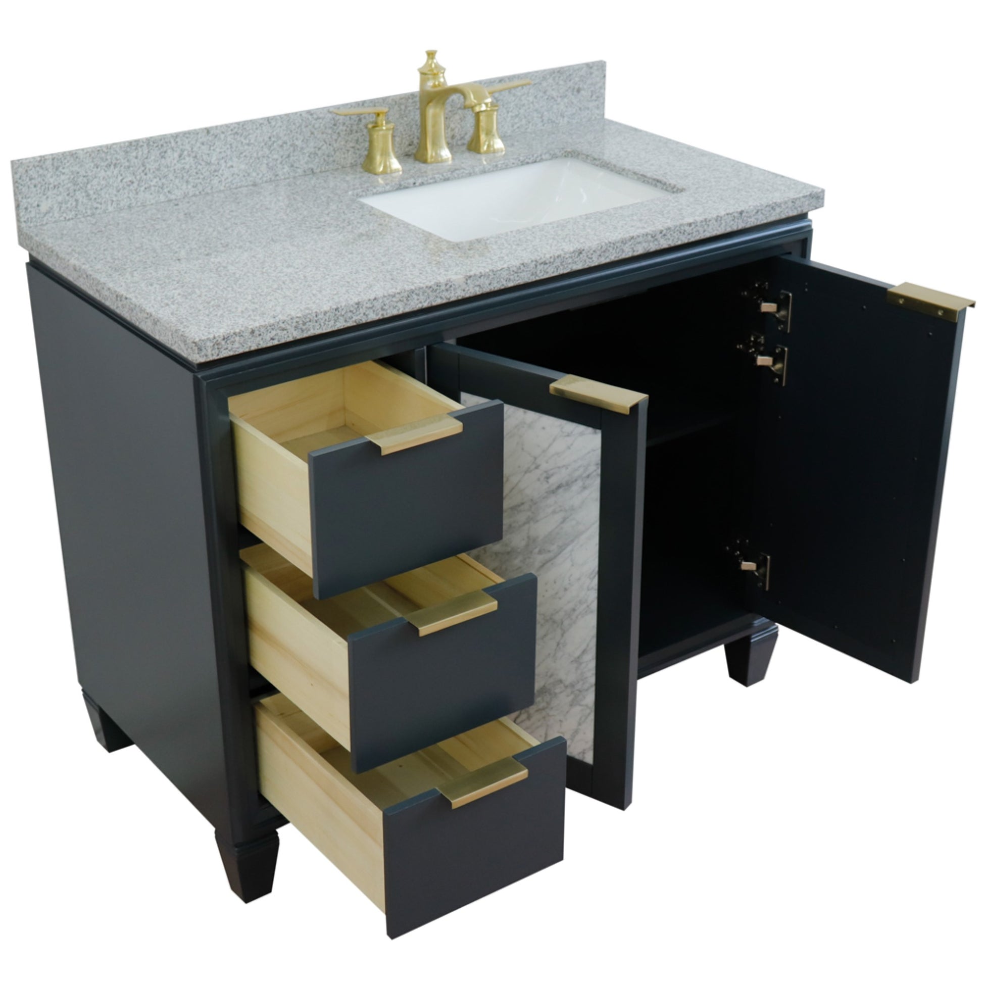 43" Single vanity in Dark Gray finish with Gray granite and rectangle sink Right door/Right sink