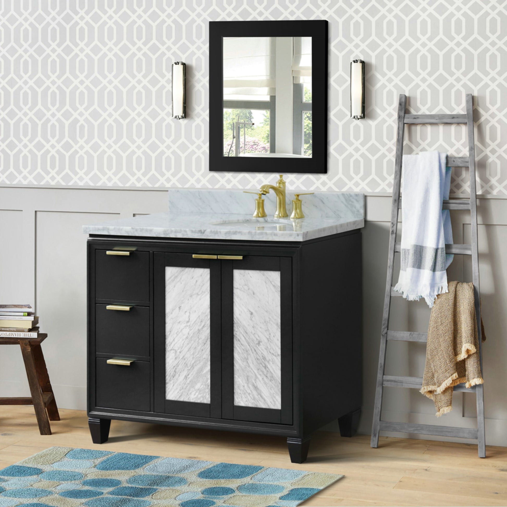 43" Single vanity in Dark Gray finish with White Carrara and oval sink Right door/Right sink