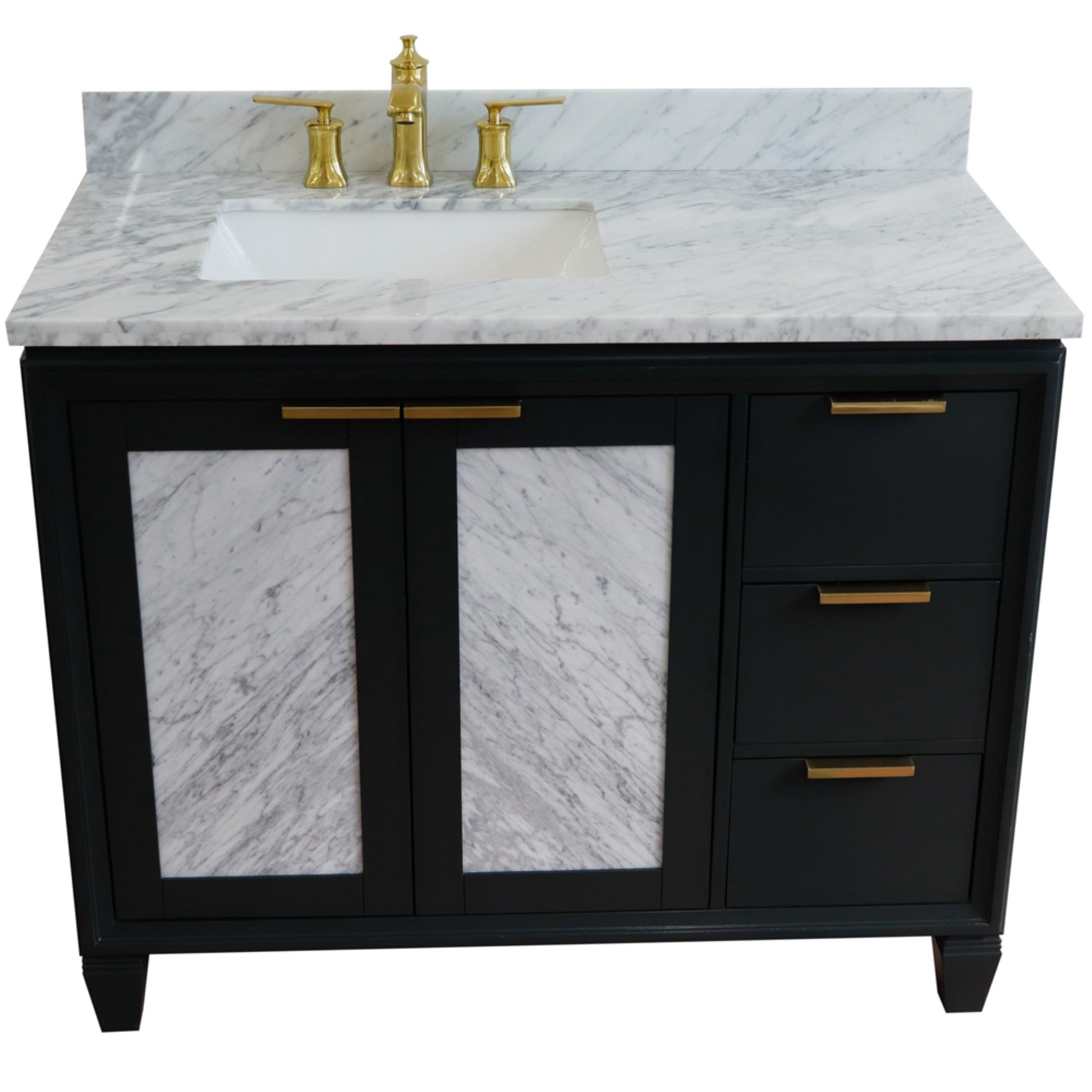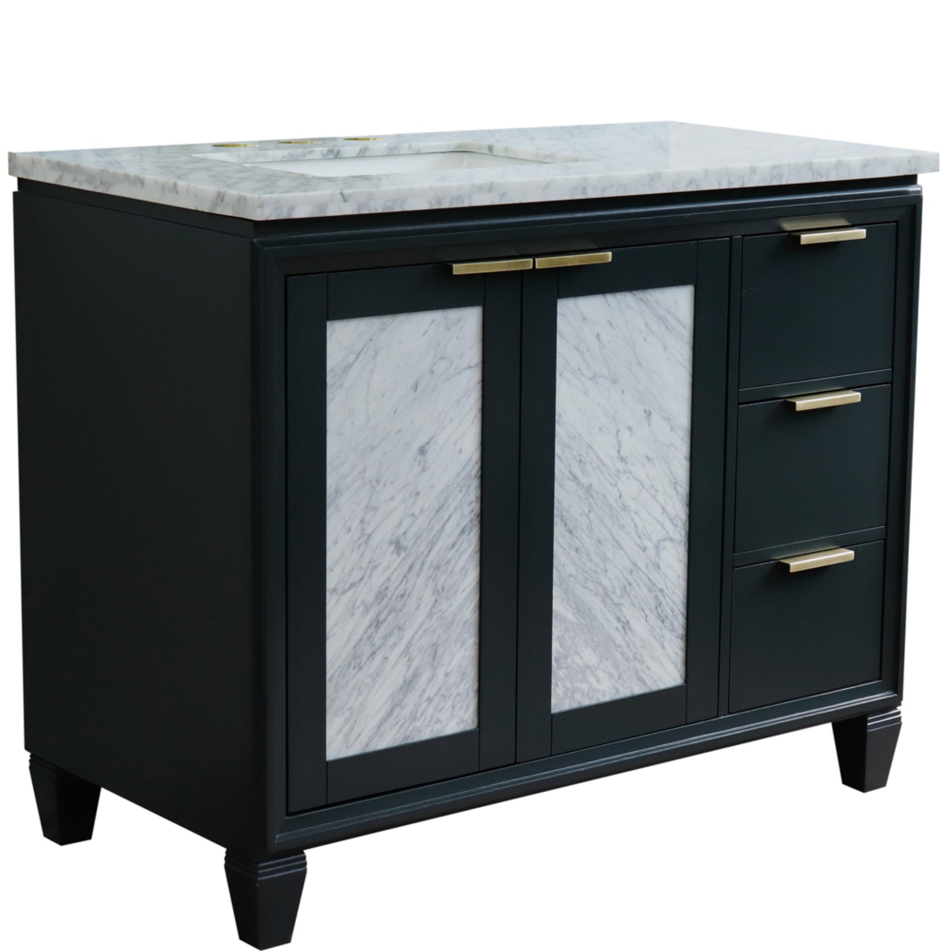 43" Single vanity in Dark Gray finish with White Carrara and rectangle sink Left door/Left sink