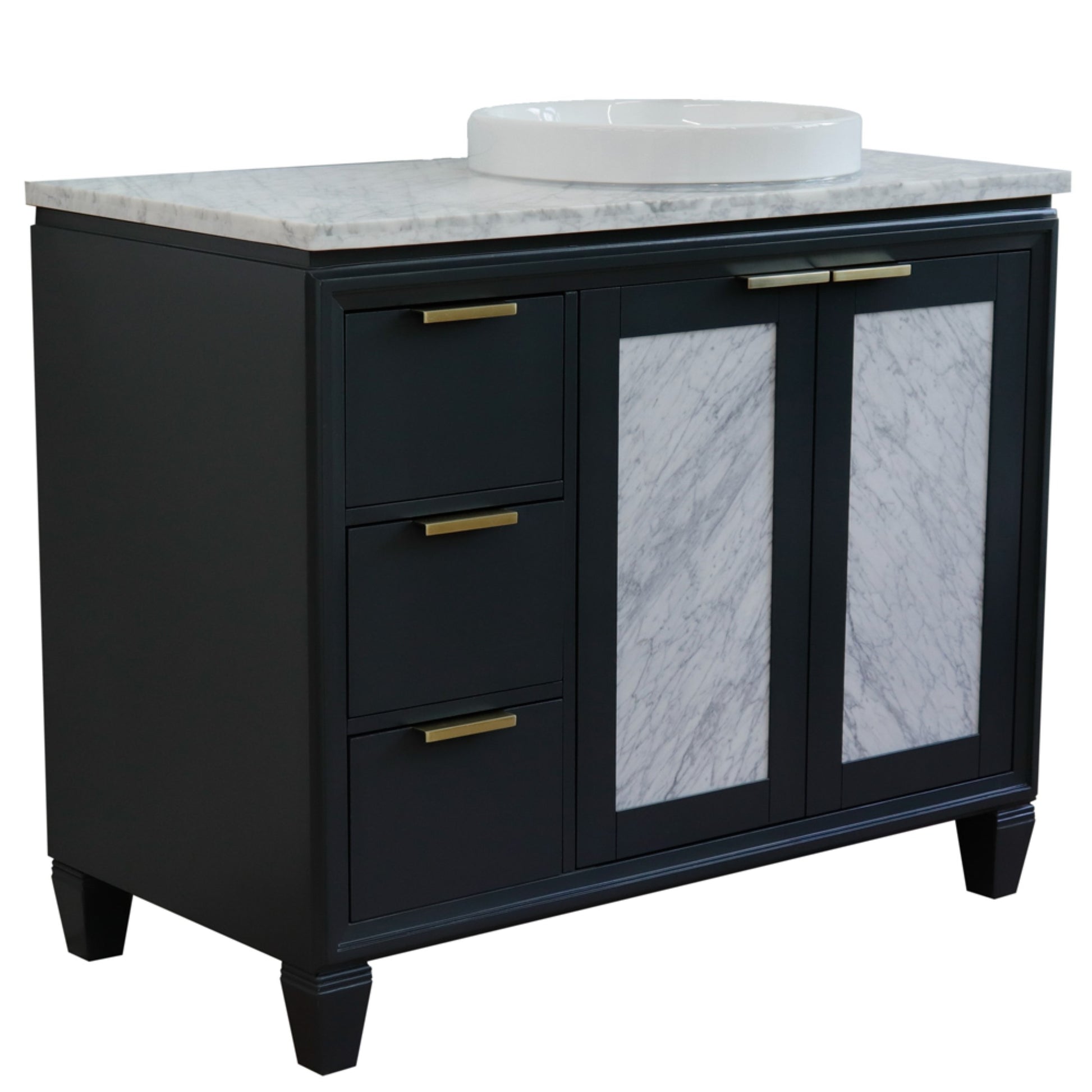 43" Single vanity in Dark Gray finish with White Carrara and round sink Right door/Right sink