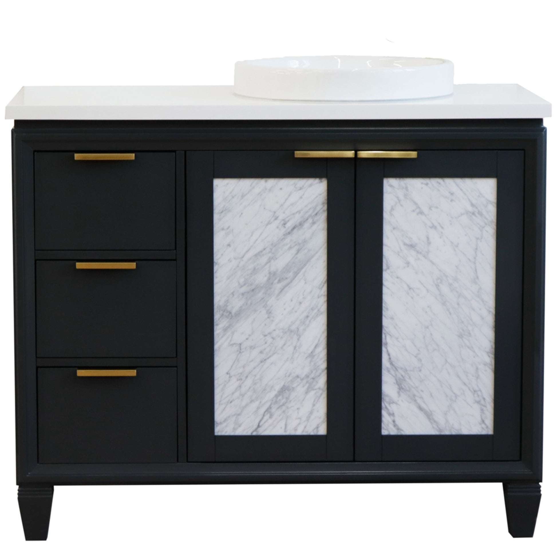43" Single vanity in Dark Gray finish with White engineered stone and round sink Right door/Right sink