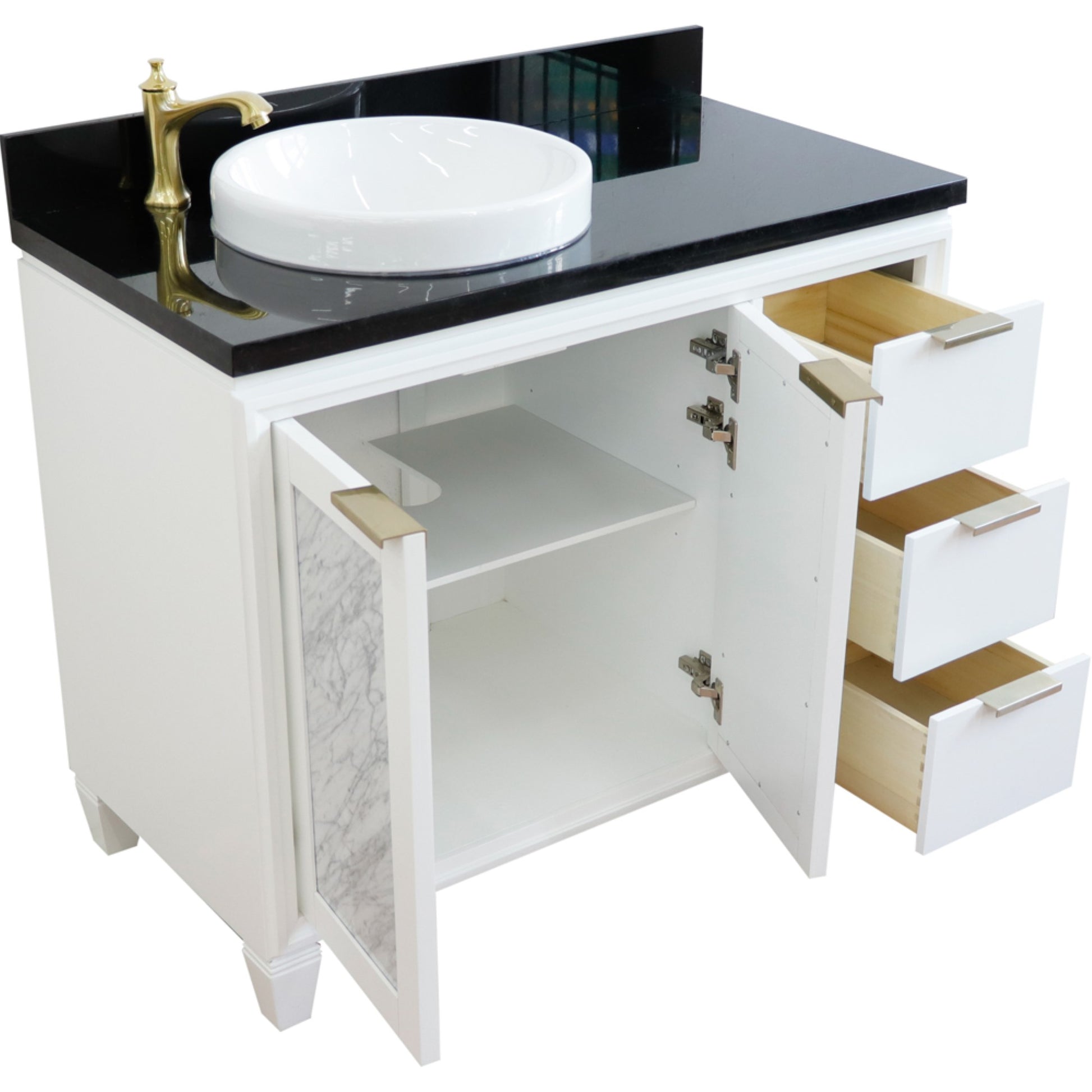 43" Single vanity in White finish with Black galaxy and round sink Left door/Left sink