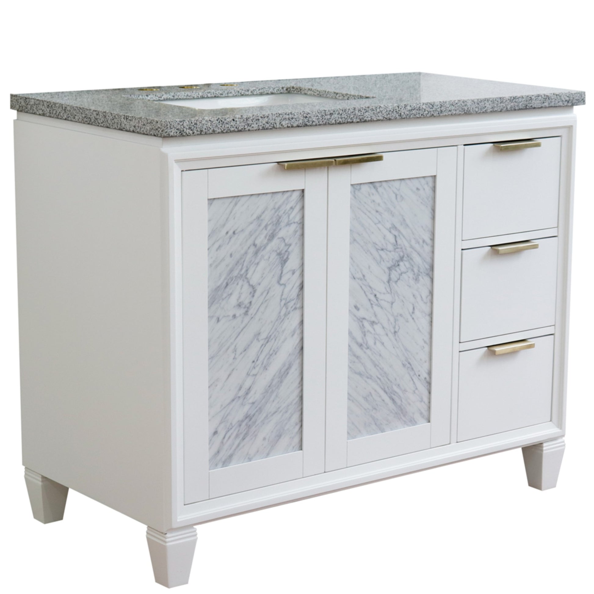 43" Single vanity in White finish with Gray granite and rectangle sink Left door/Left sink