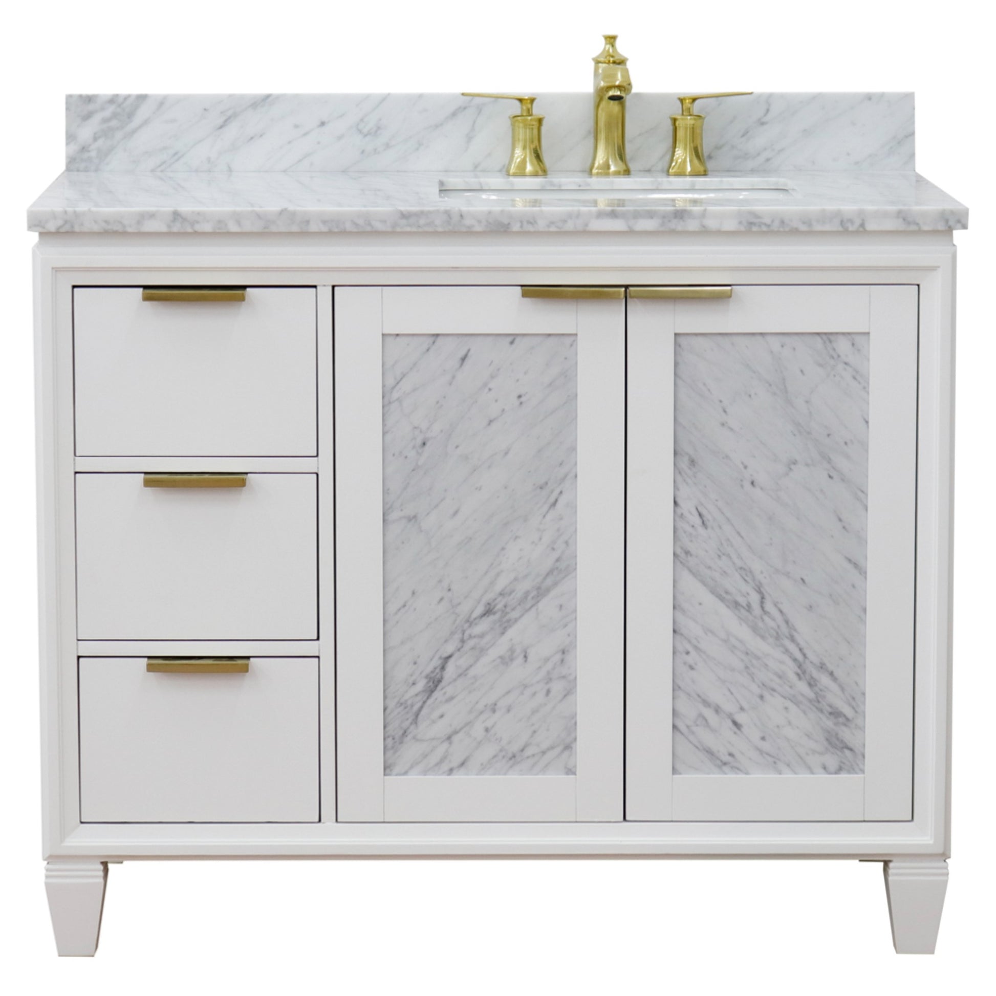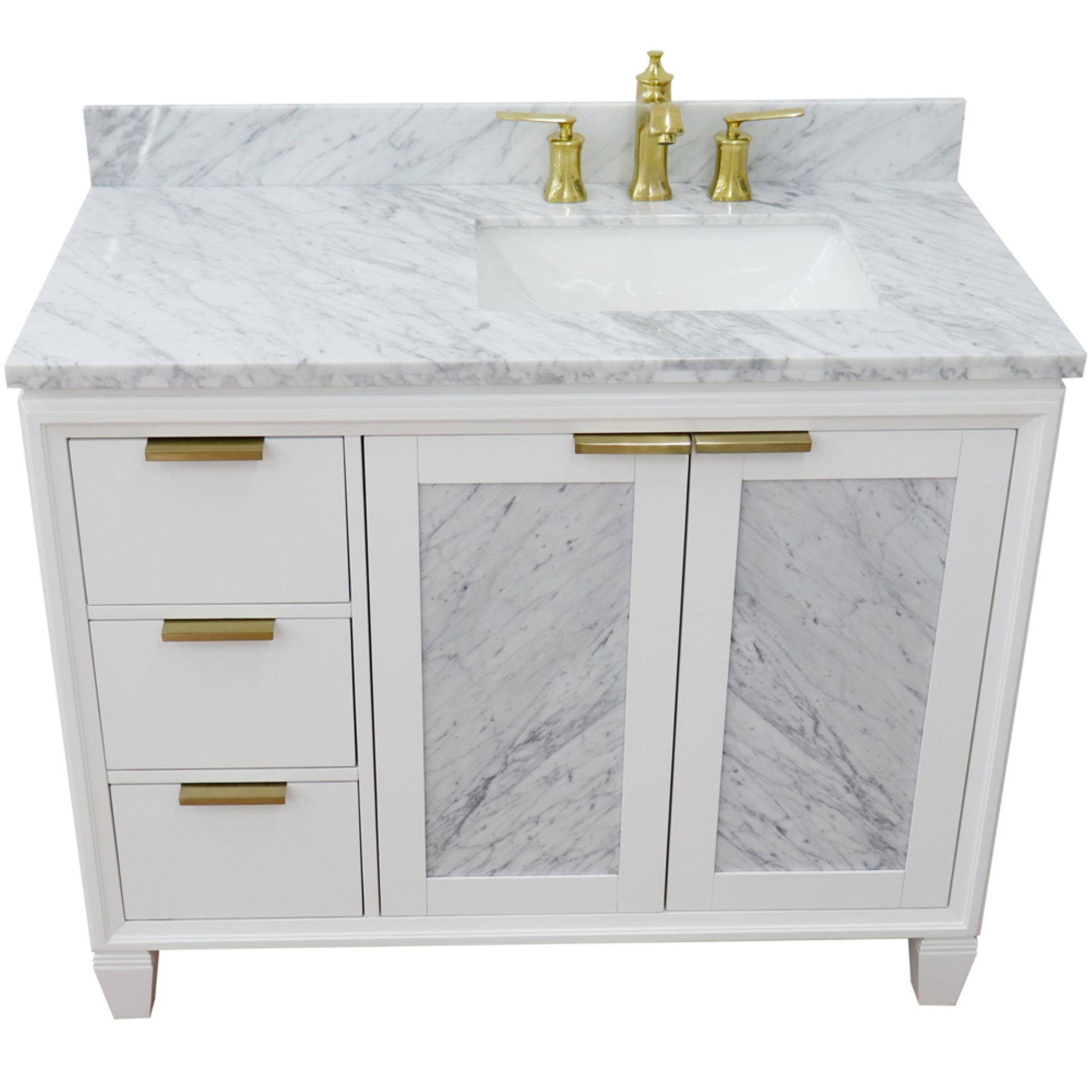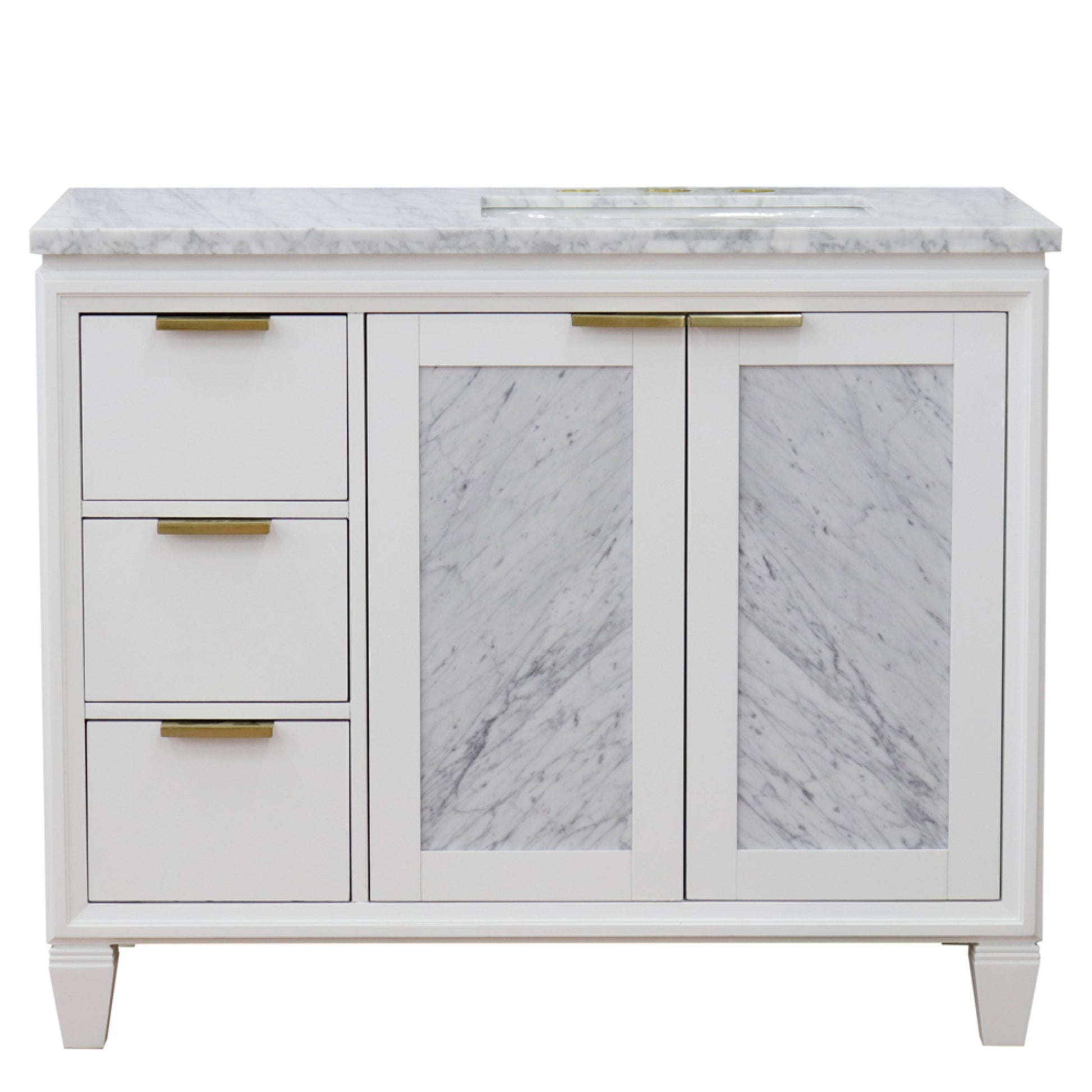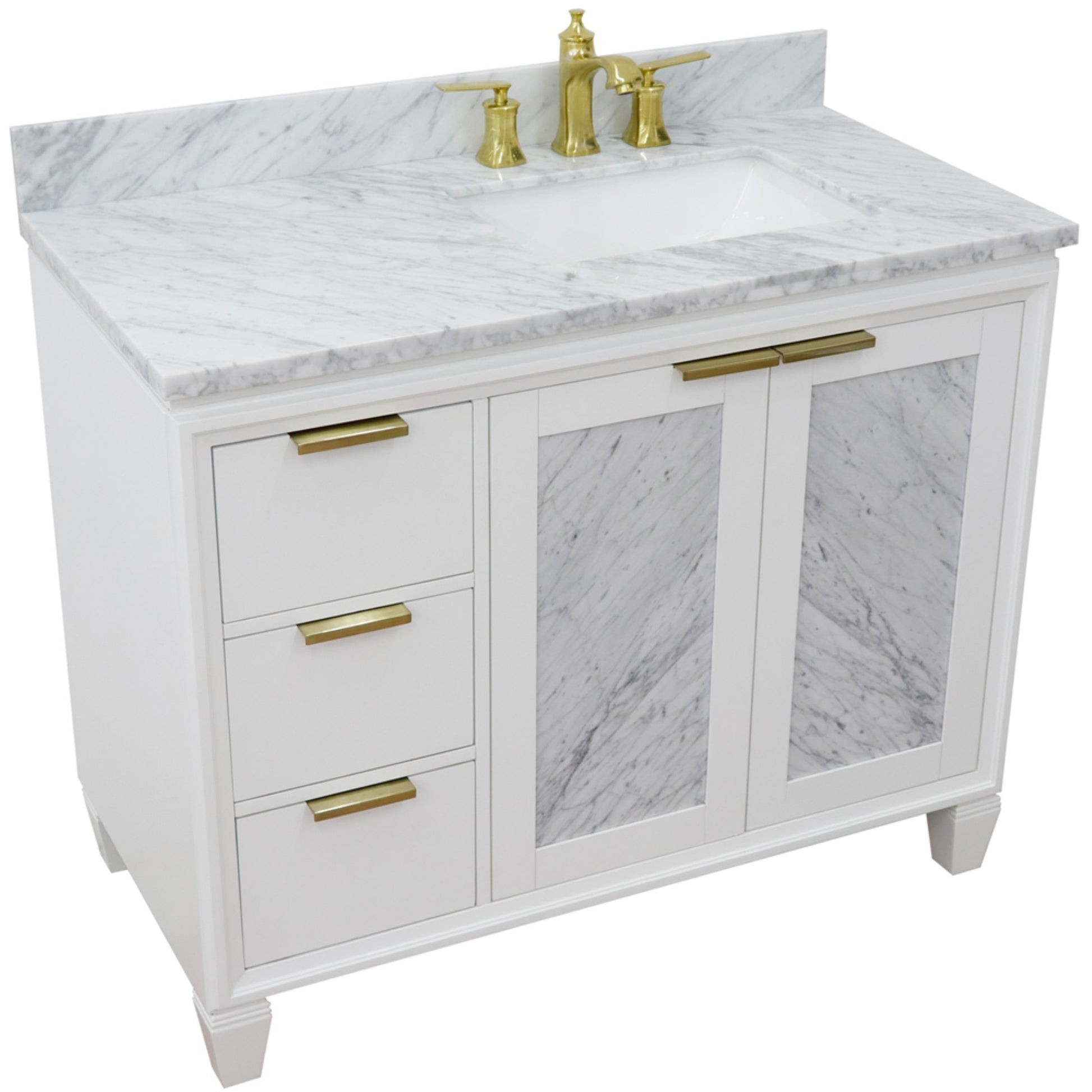 43" Single vanity in White finish with White Carrara and rectangle sink Right door/Right sink