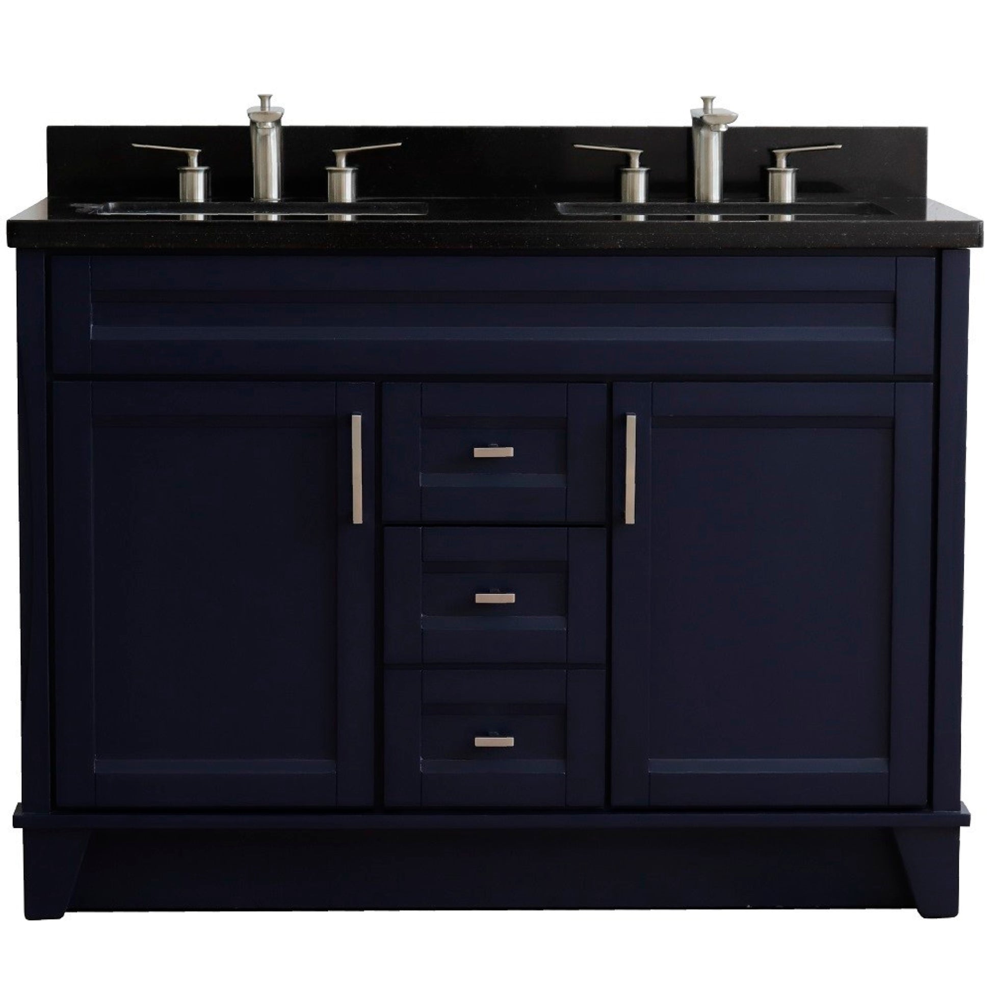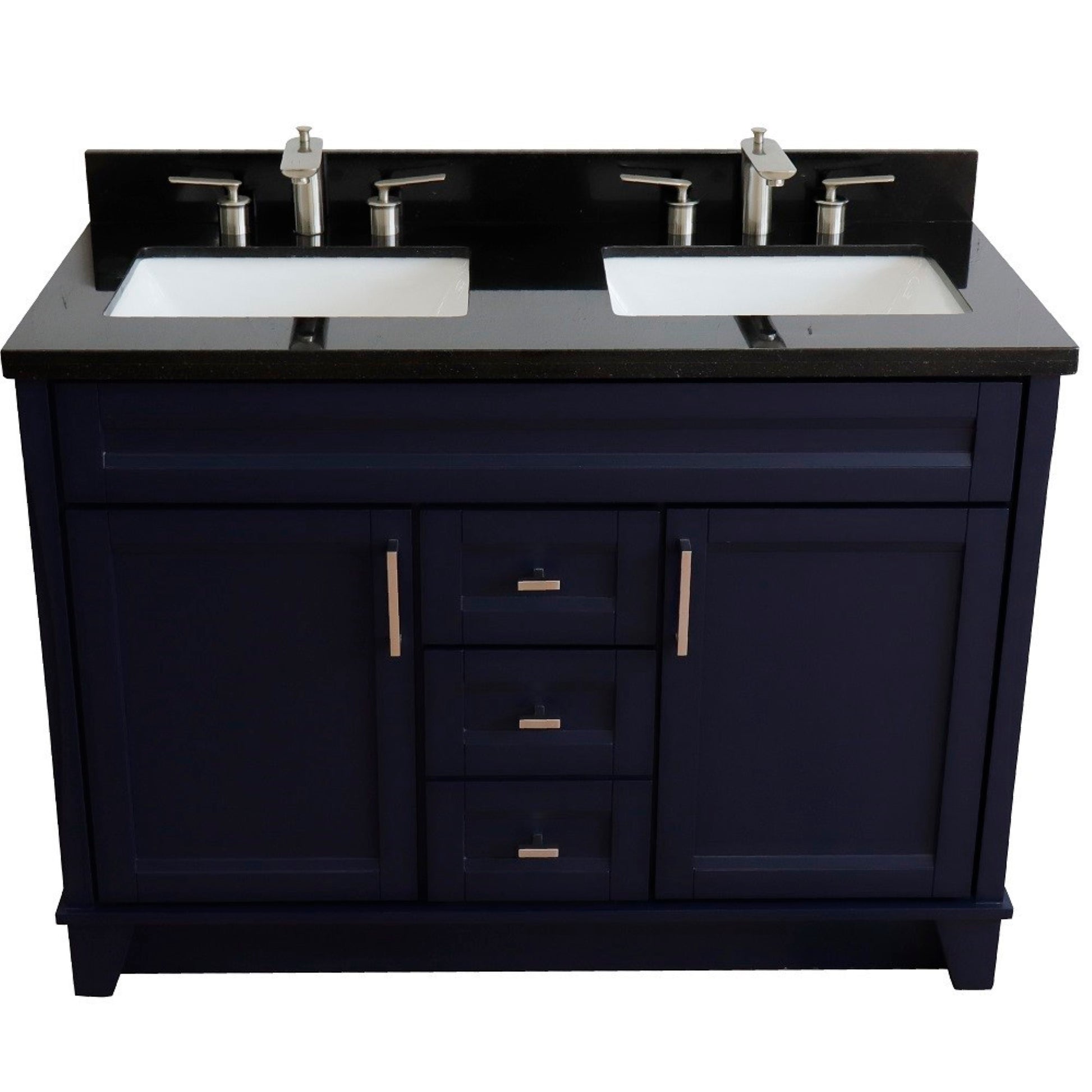 49" Double sink vanity in Blue finish with Black galaxy granite and rectangle sink