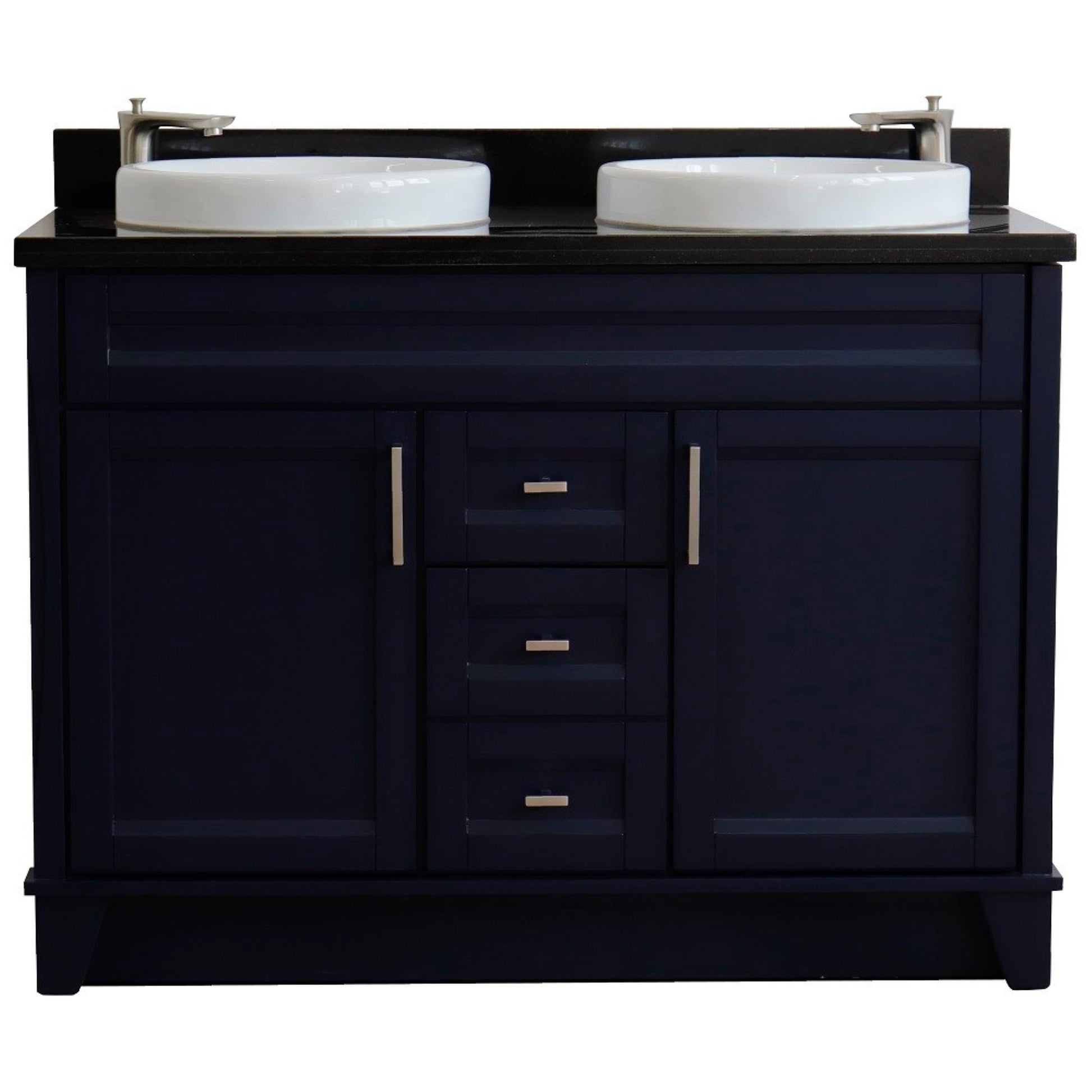 49" Double sink vanity in Blue finish with Black galaxy granite and round sink