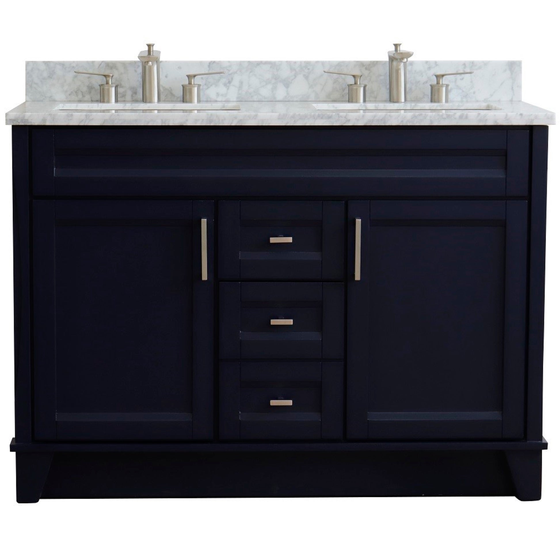 49" Double sink vanity in Blue finish with White Carrara marble and rectangle sink