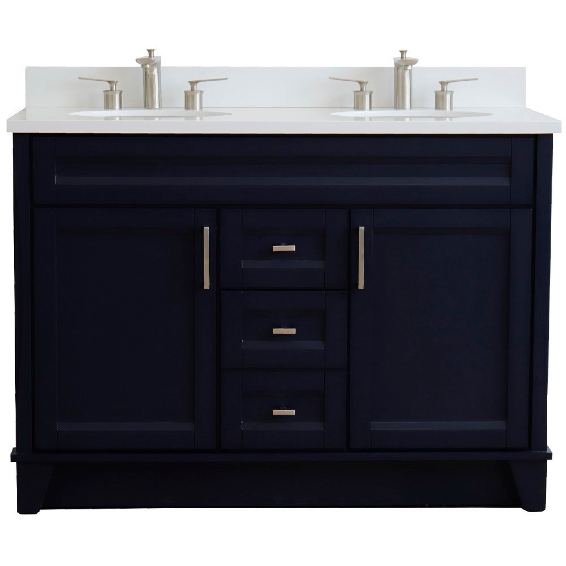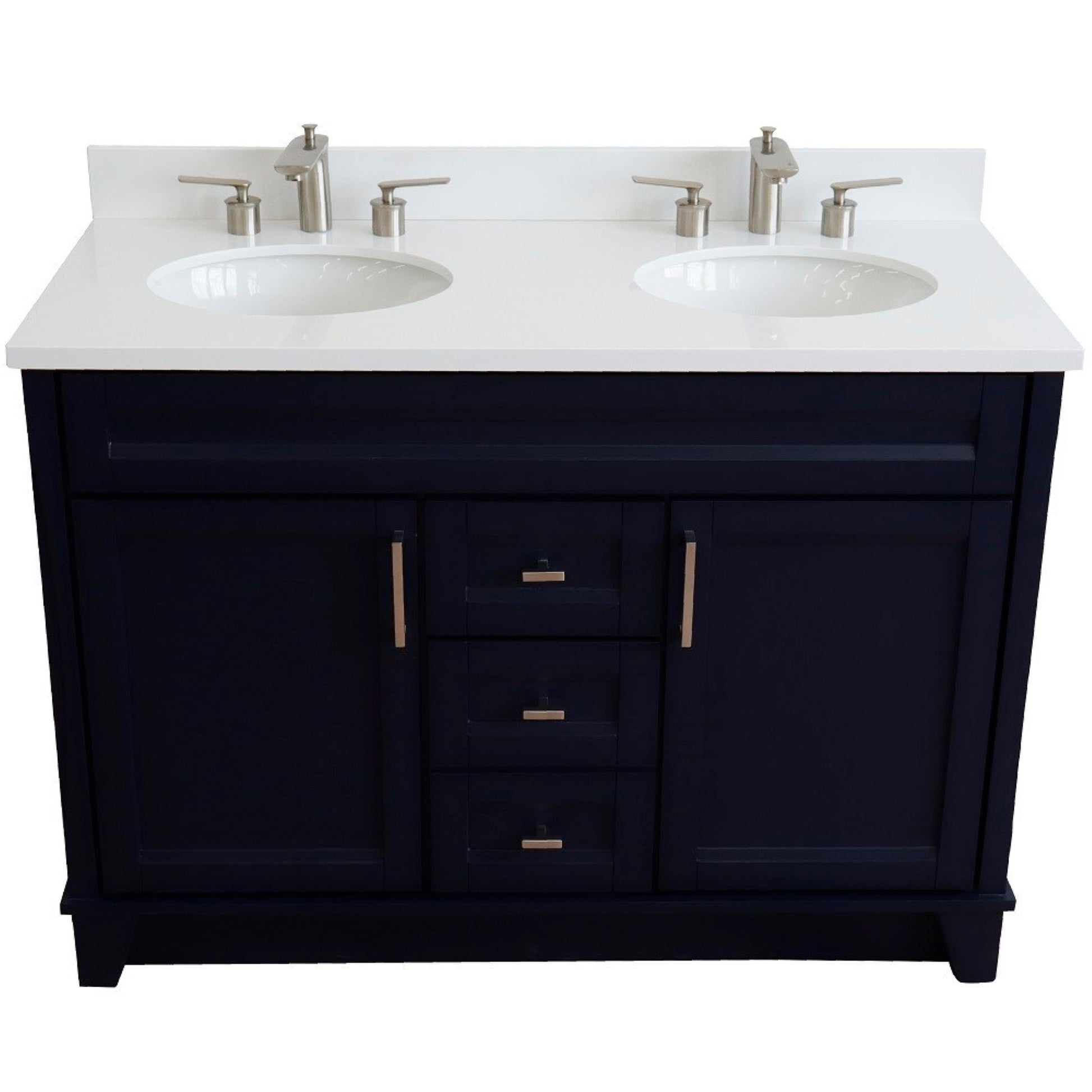49" Double sink vanity in Blue finish with White engineered stone and oval sink