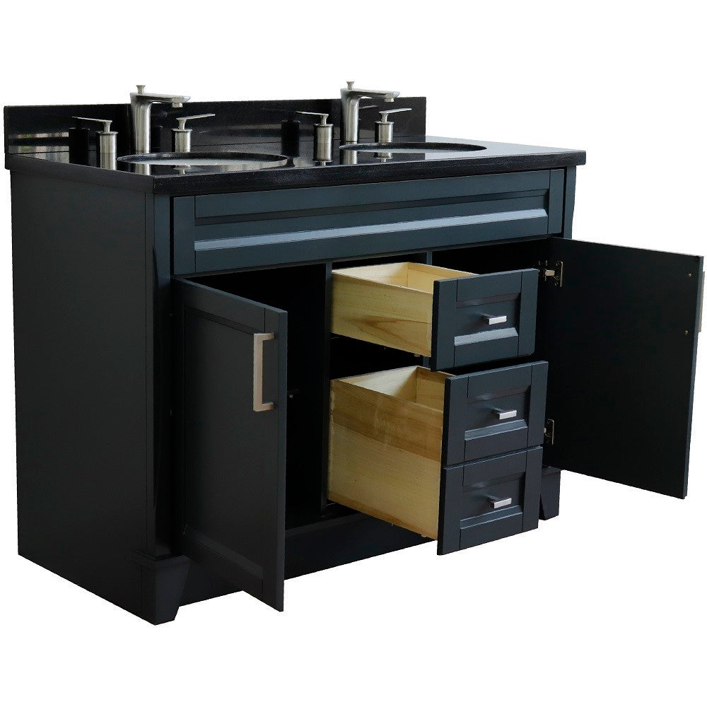 49" Double sink vanity in Dark Gray finish with Black galaxy granite and oval sink