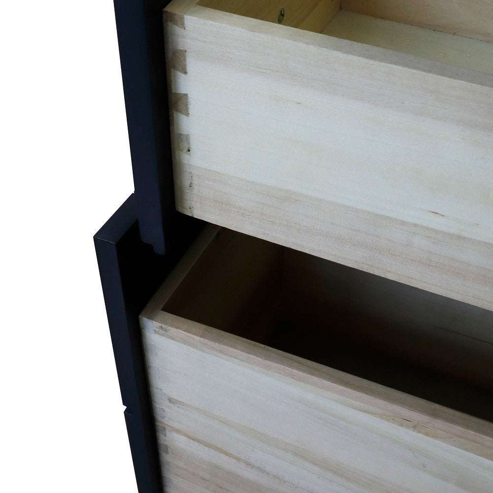 The Terni collection by Bellaterra Home features simple style bathroom vanities that can integrate seamlessly with any home design. From a simple or to the grand home design, you will appreciate this beautifully crafted piece of furniture as the focal point in your bathroom. The structure of the cabinet is built with solid oak. The vanity has two drawers and two cabinet doors that open to a large ample storage space. The drawers are constructed with English dovetail and are installed with smooth full extension glides to provide durability. This vanity features brushed nickel finish hardware and a beautiful counter top that is pre-sealed and polished for added protection. The bathroom vanity top is preinstalled with two white cUPC certified ceramic sinks.