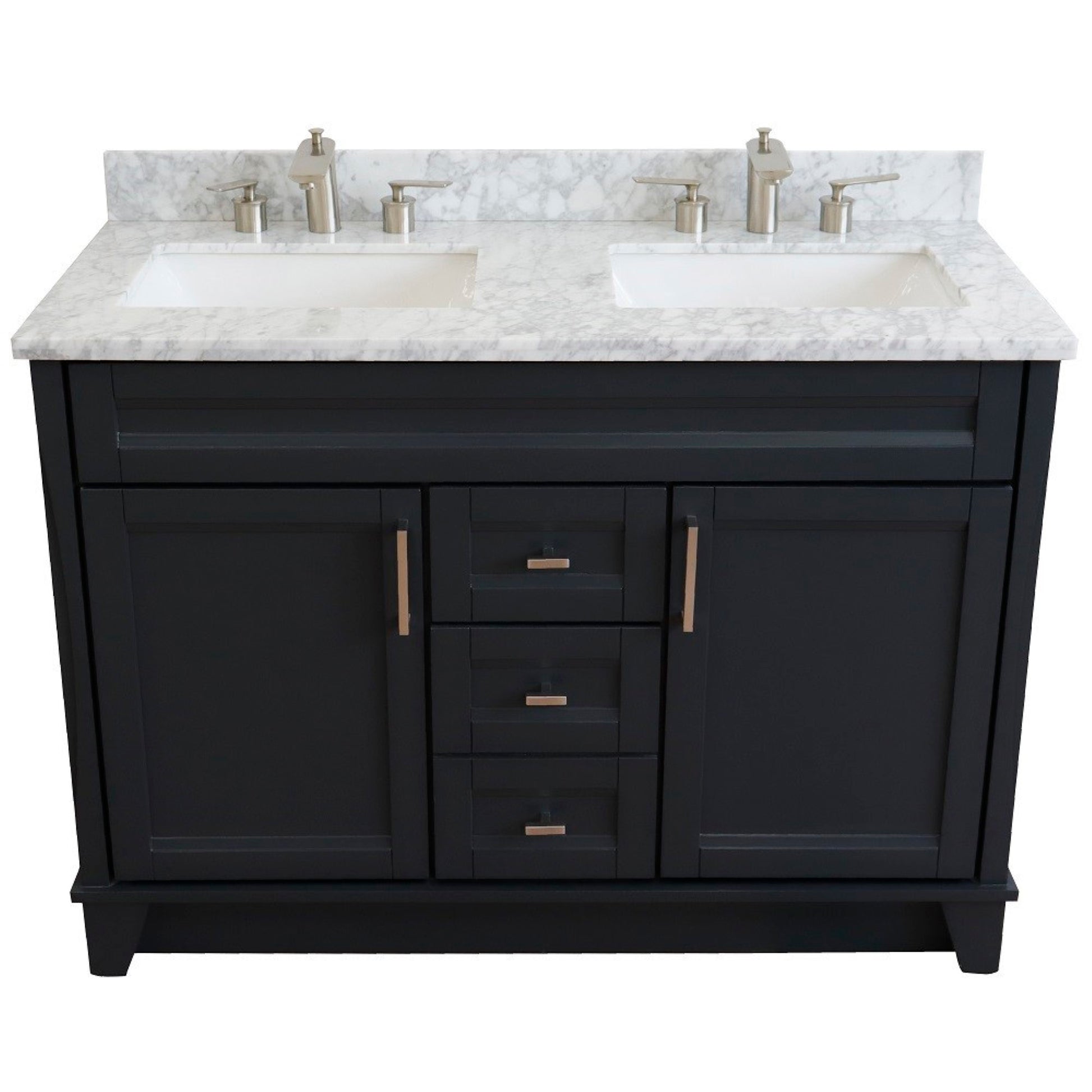 49" Double sink vanity in Dark Gray finish with White Carrara marble and rectangle sink